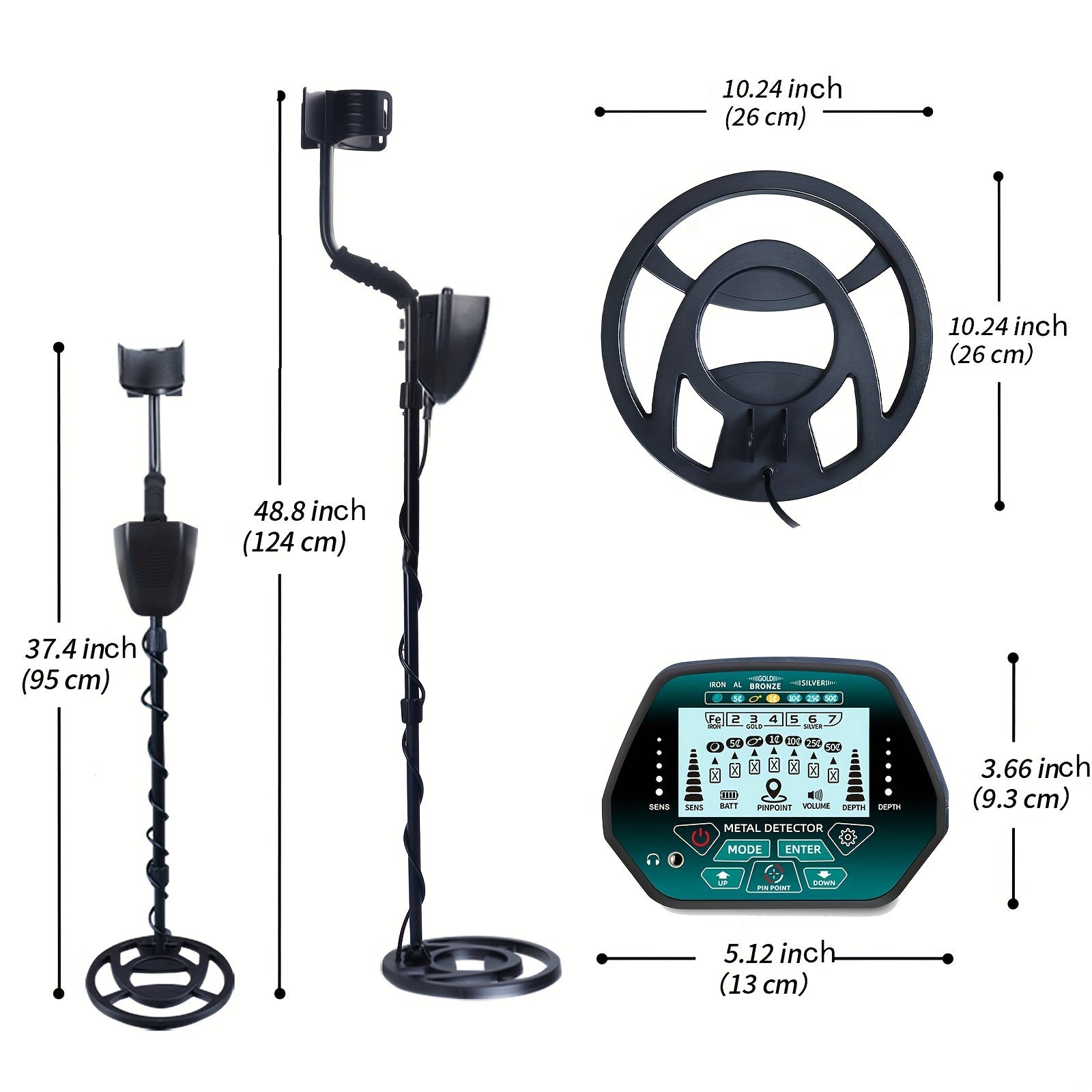 High-Precision Metal Detector with 25.4cm Coil Adjustable LED Display Backlit Screen for Coin and Treasure Hunting