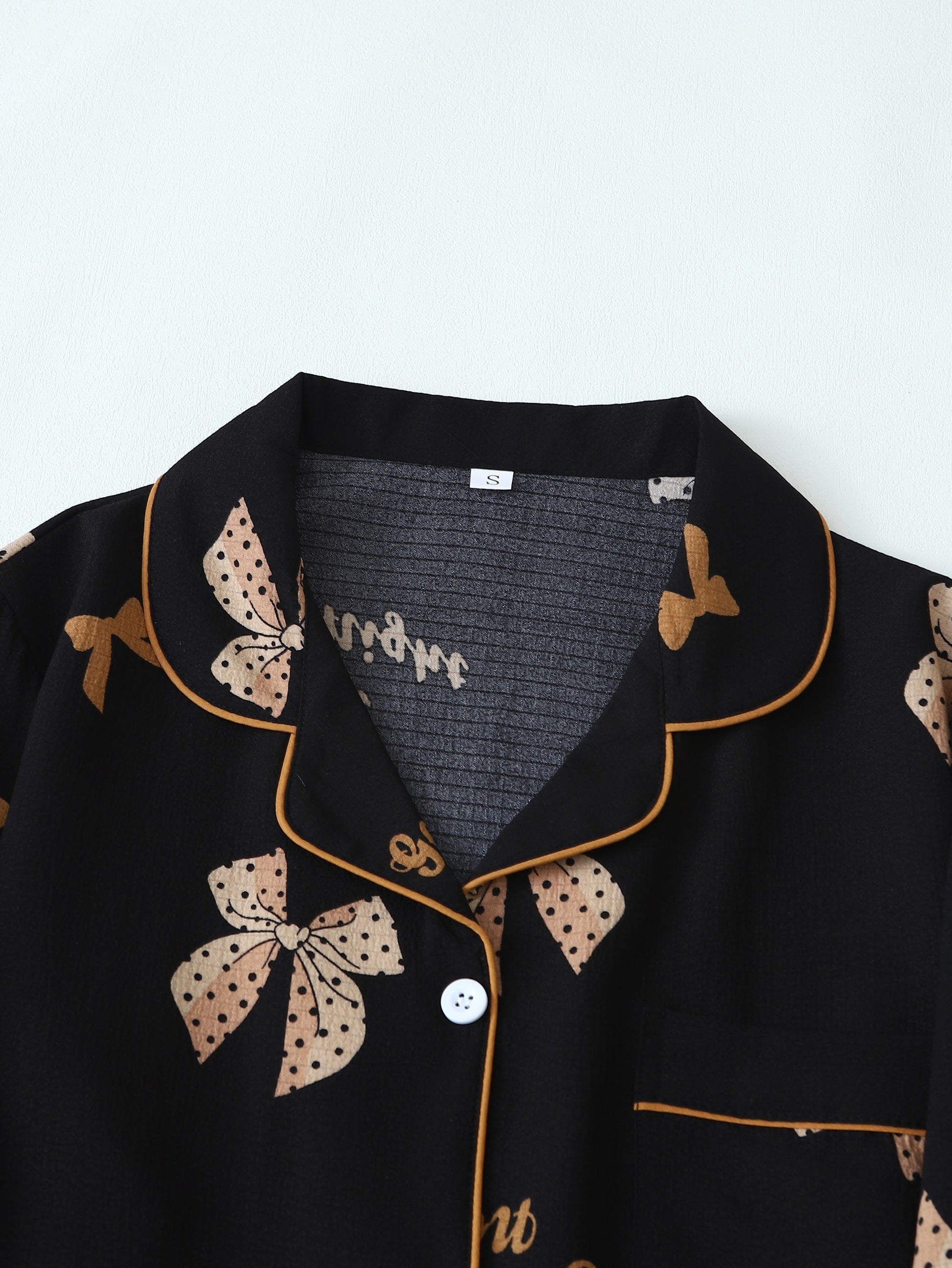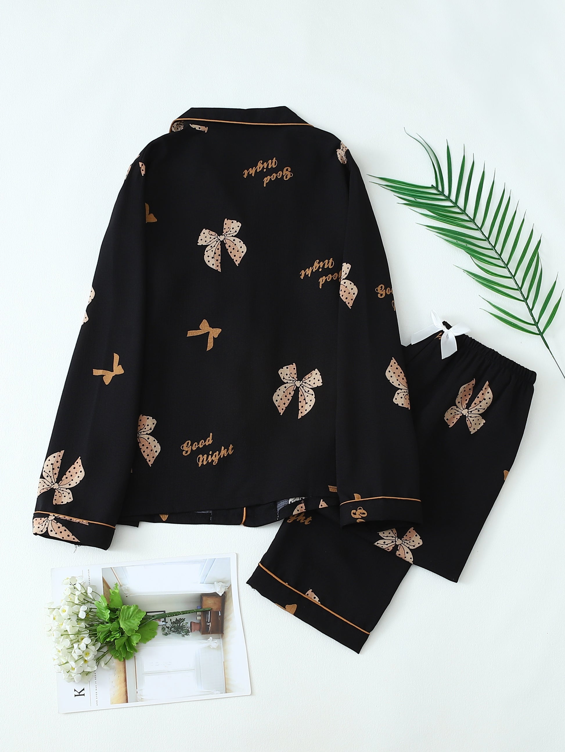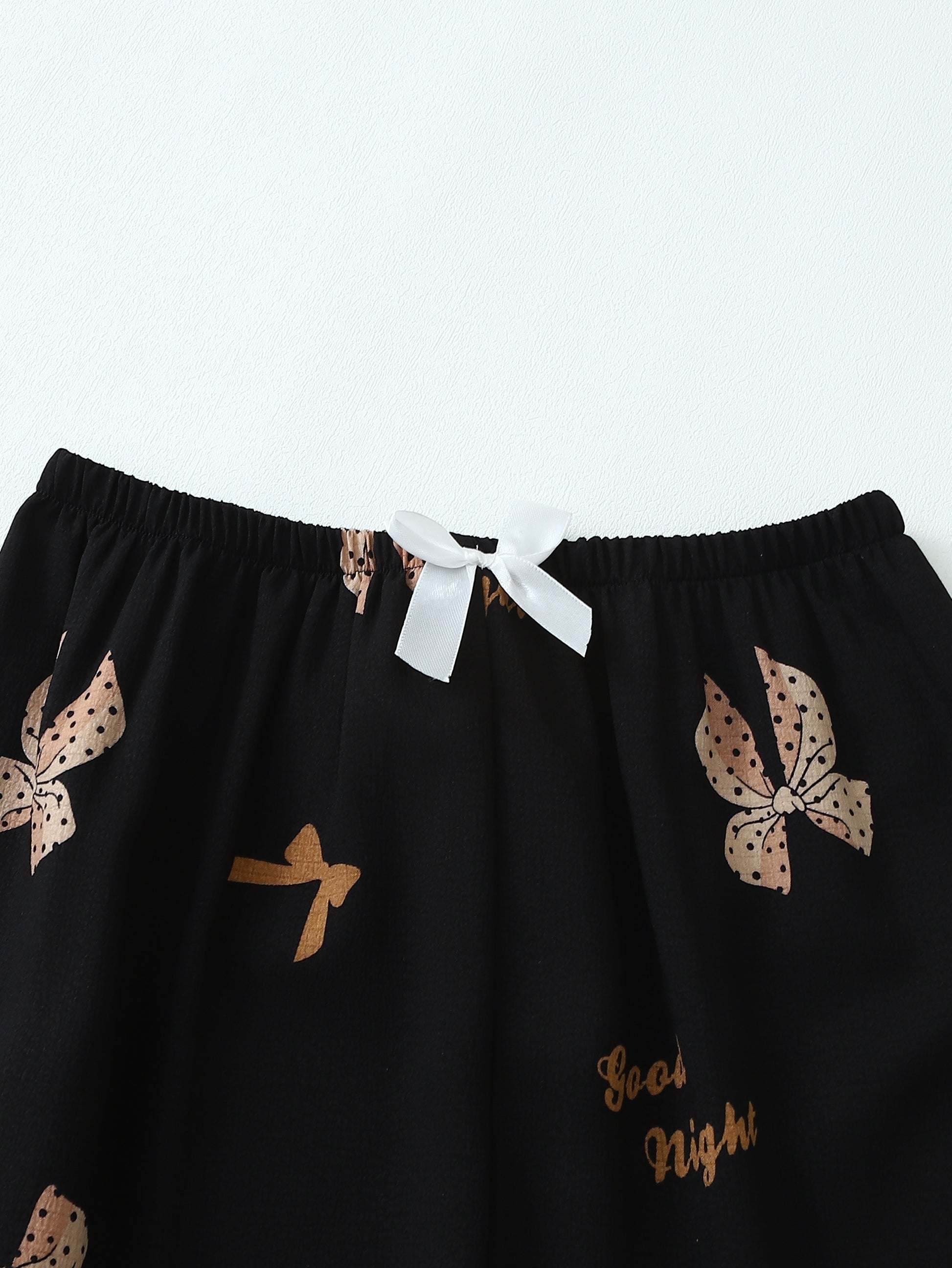 Teen Girl Pajama Set with Bow Print Soft Polyester Lounge Sleepwear