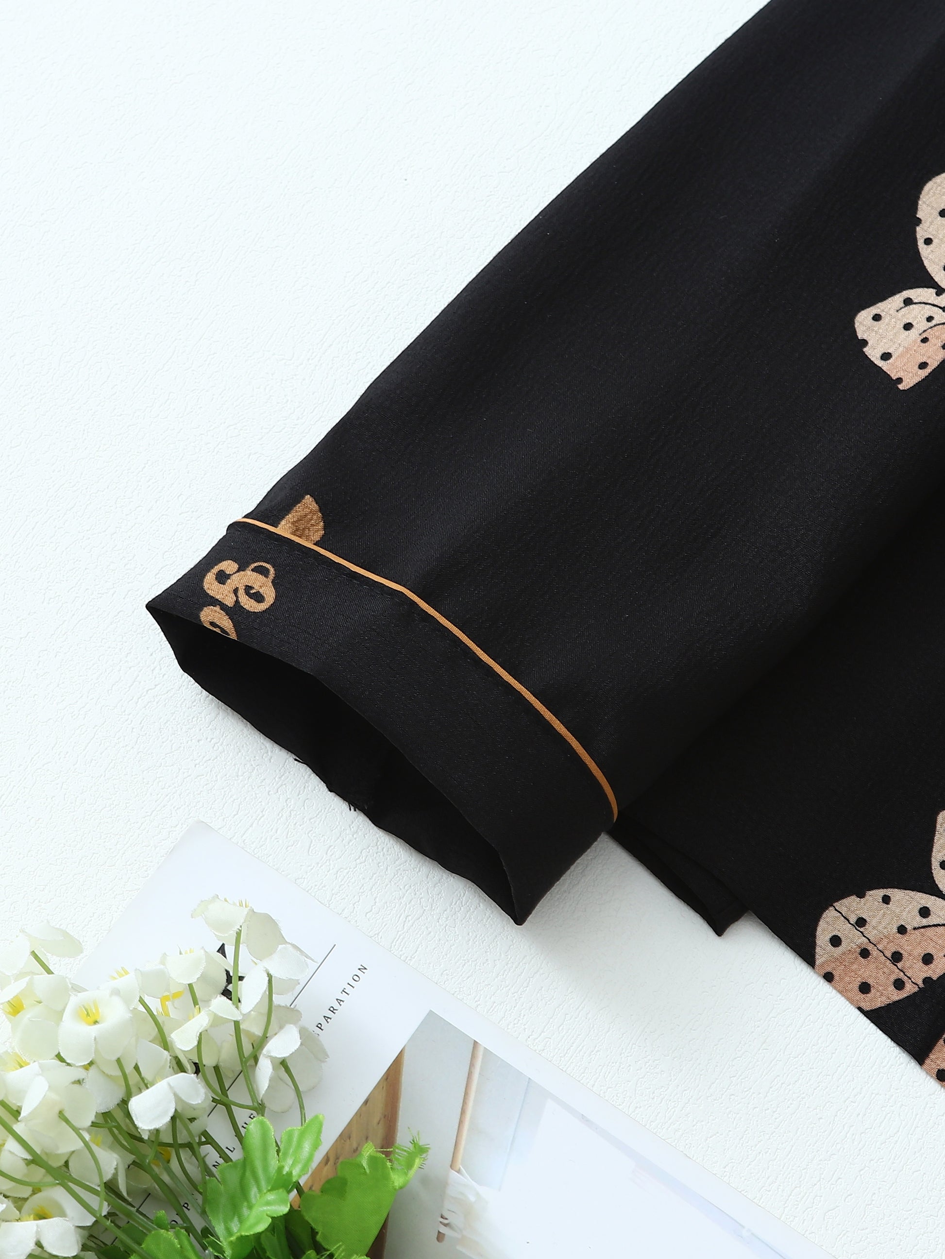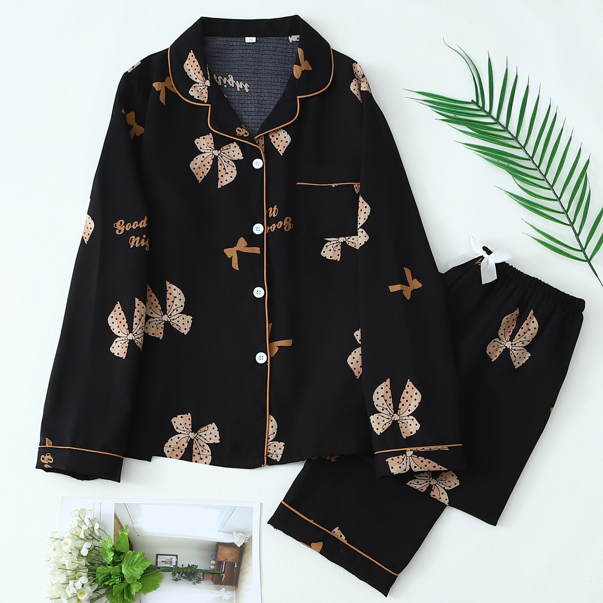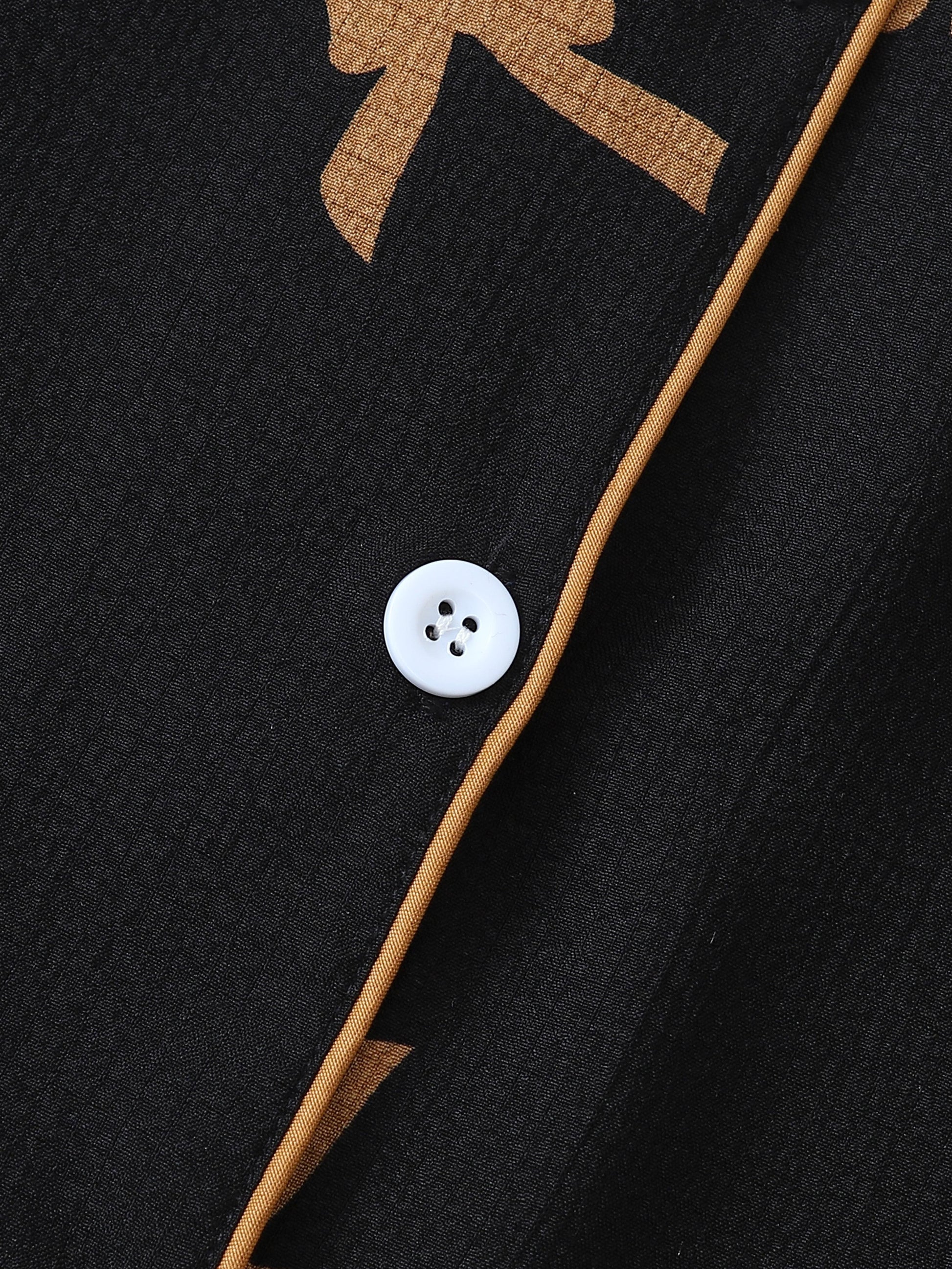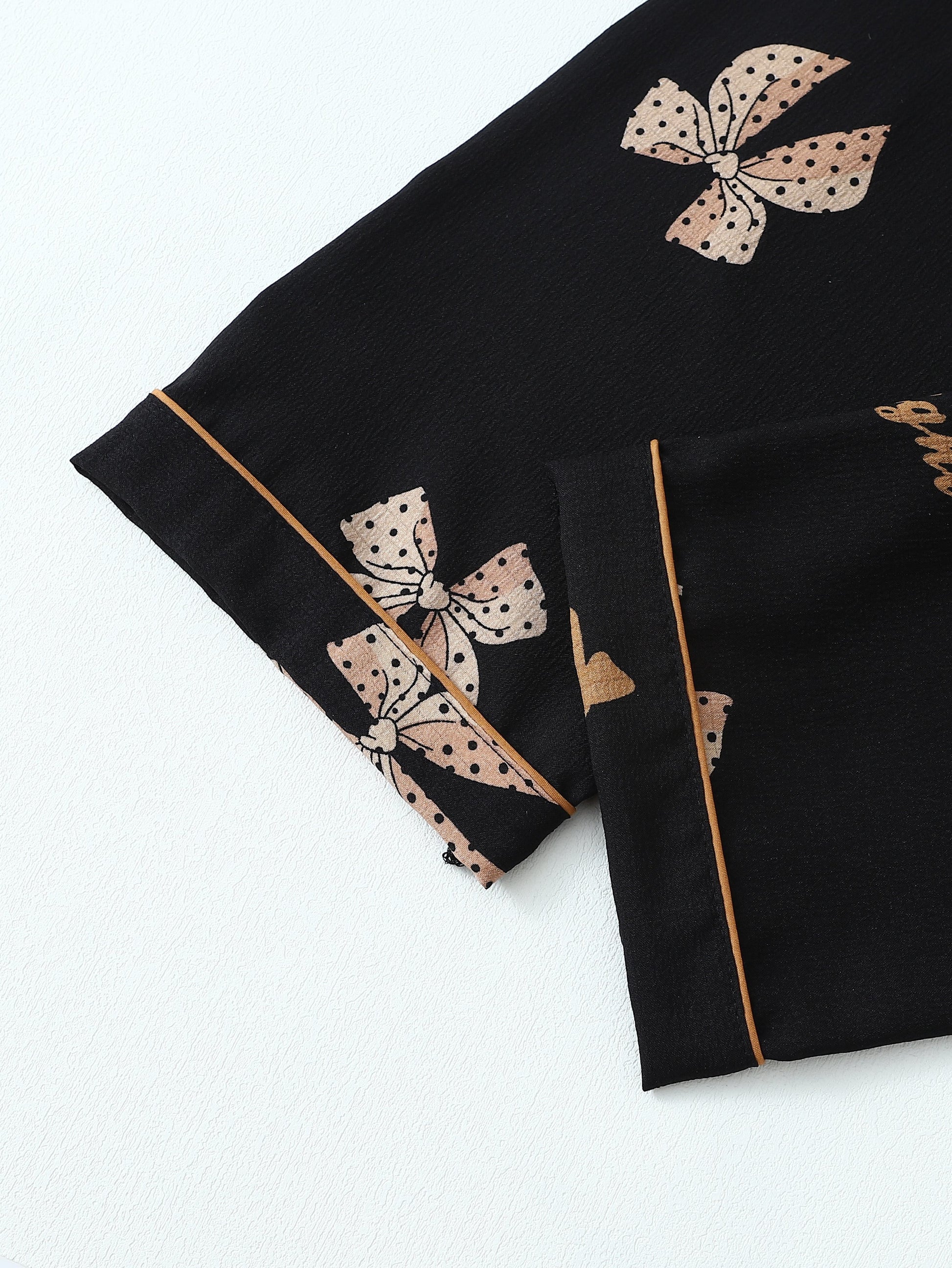 Teen Girl Pajama Set with Bow Print Soft Polyester Lounge Sleepwear