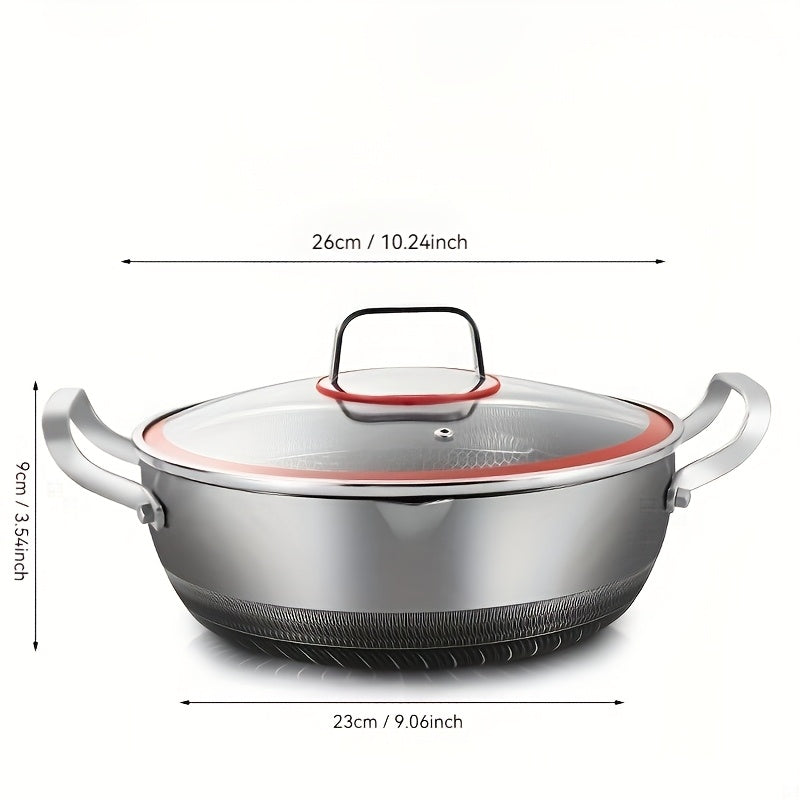 10-Inch Stainless Steel Frying Pan with Lid Non-Stick Honeycomb Bottom Induction Compatible