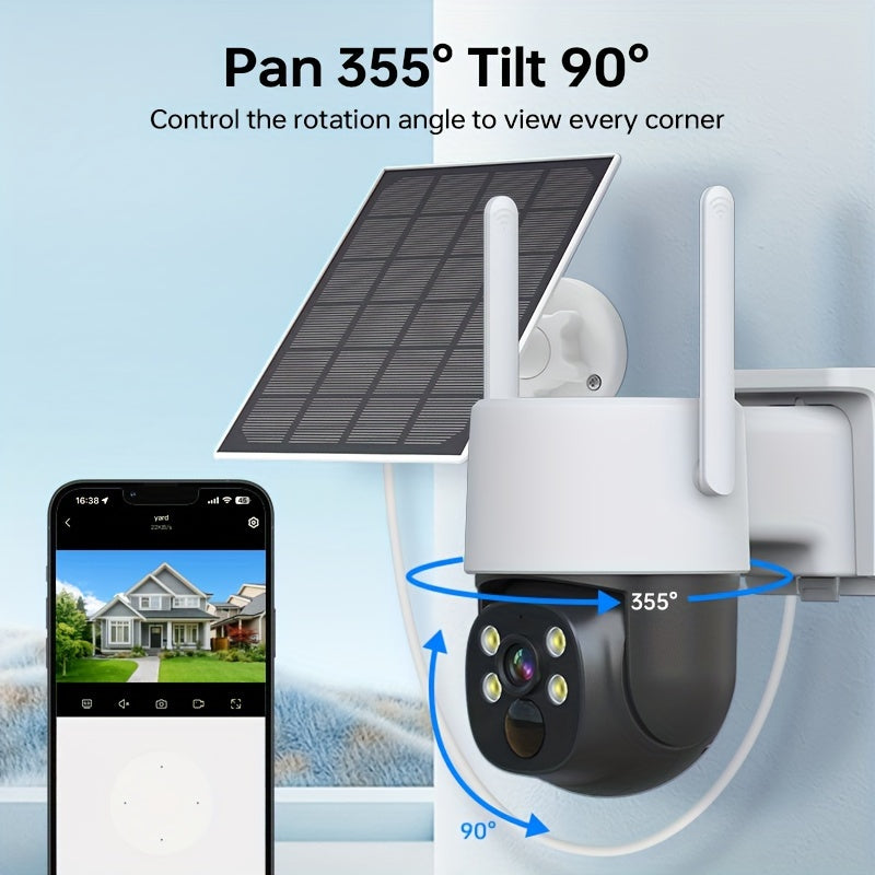 Wireless Solar-Powered Outdoor Security Camera with Pan Tilt 1440P HD Night Vision