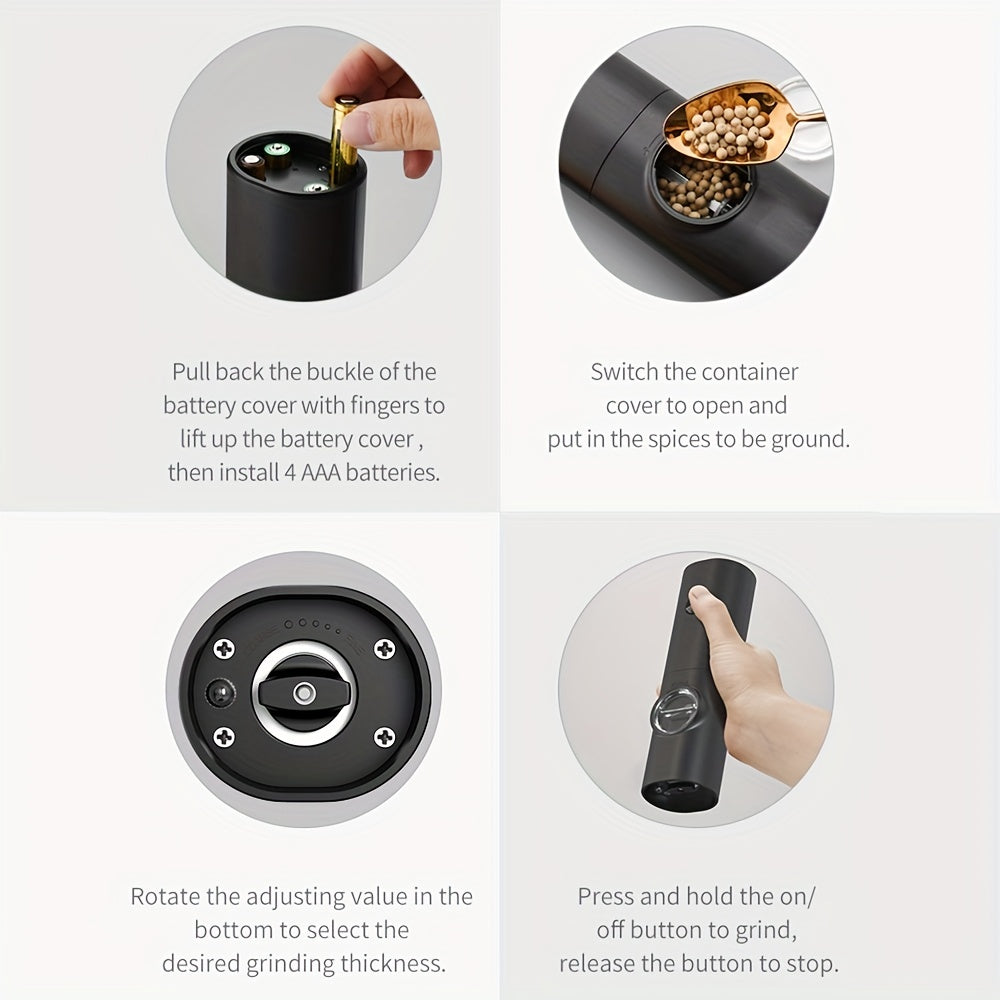 Electric Salt and Pepper Grinder Set Stainless Steel Battery Powered Adjustable