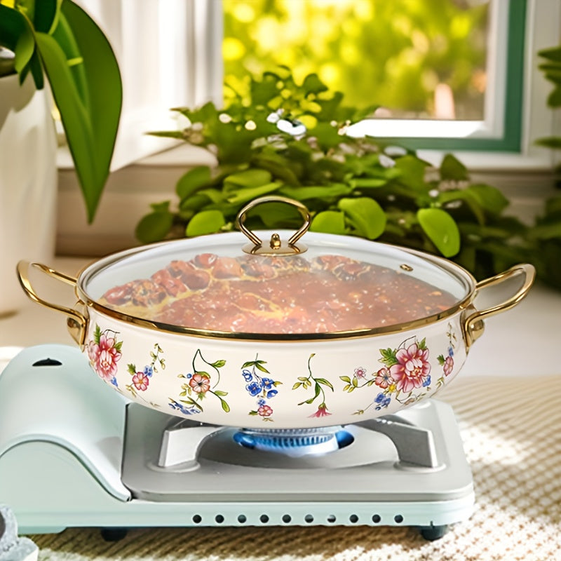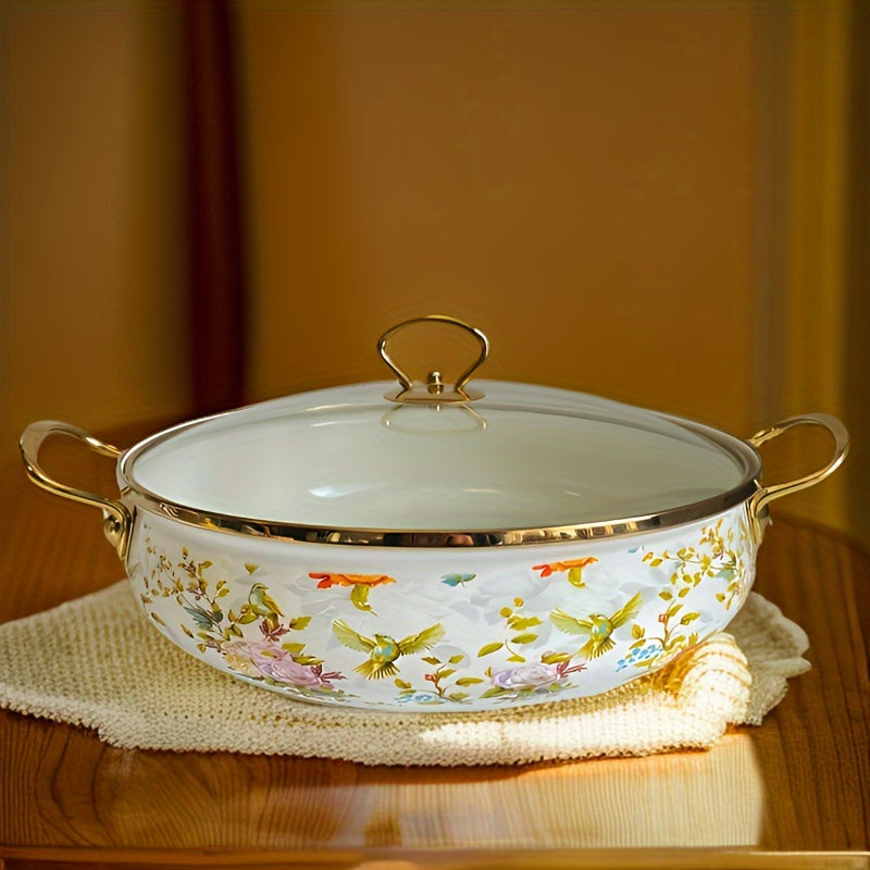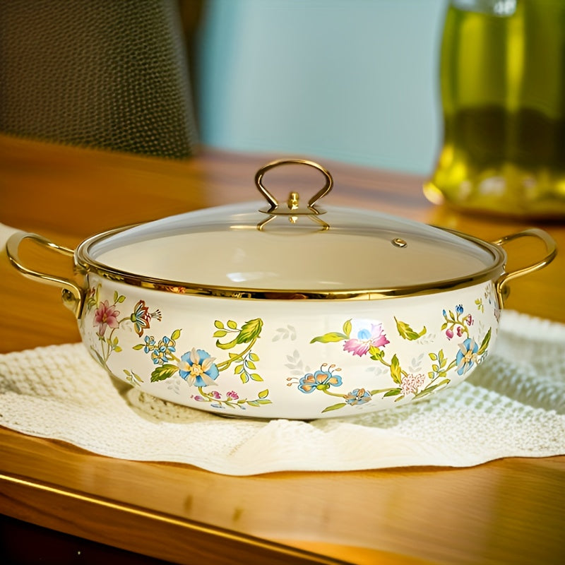 Enamel Porcelain Plate Set Three Flower Colors Golden Borders Kitchen Decor