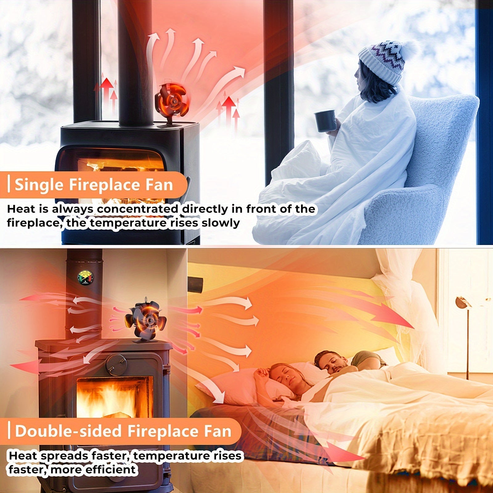 Double Sided Wood Burning Stove Fan with Quiet Motor and 4 Blades for Heat Distribution