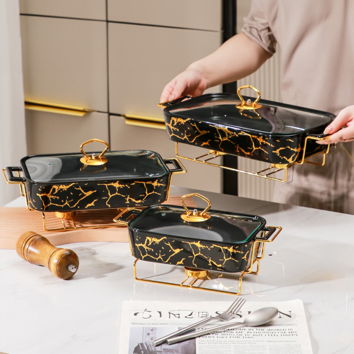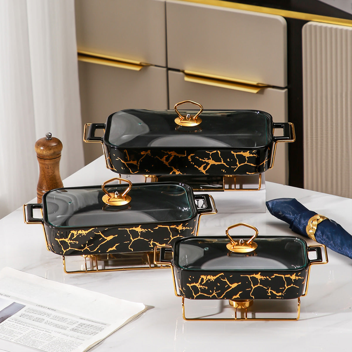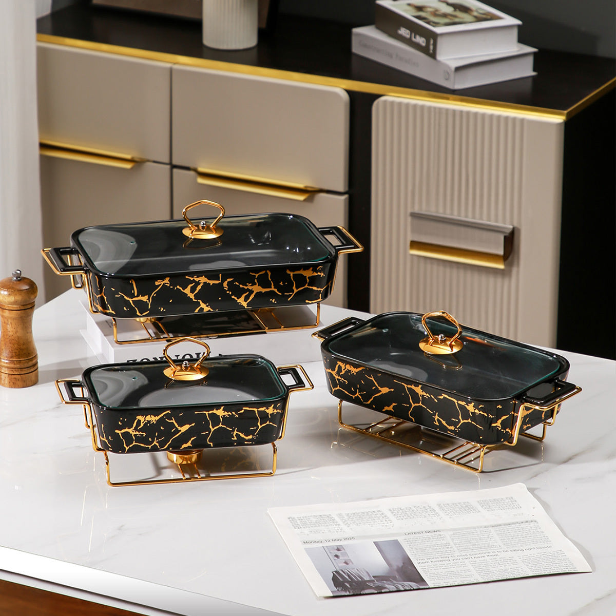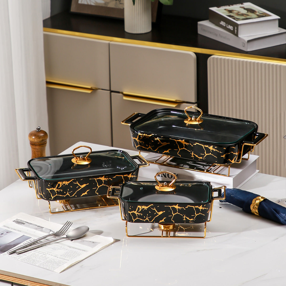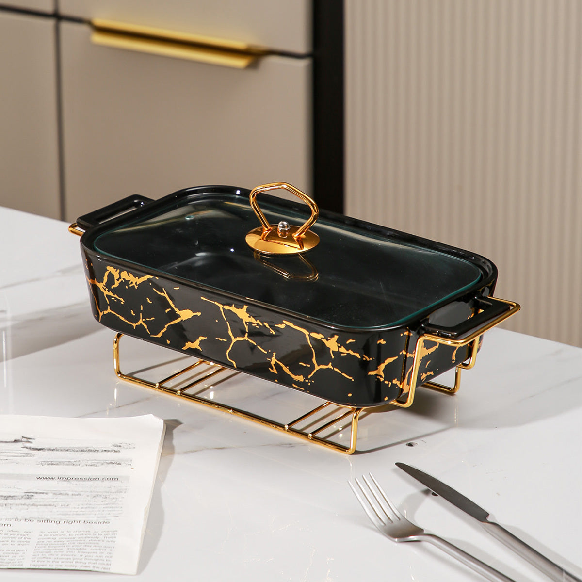 Ceramic Casserole Dish with Lid and Iron Stand for Kitchen, Parties, Restaurants