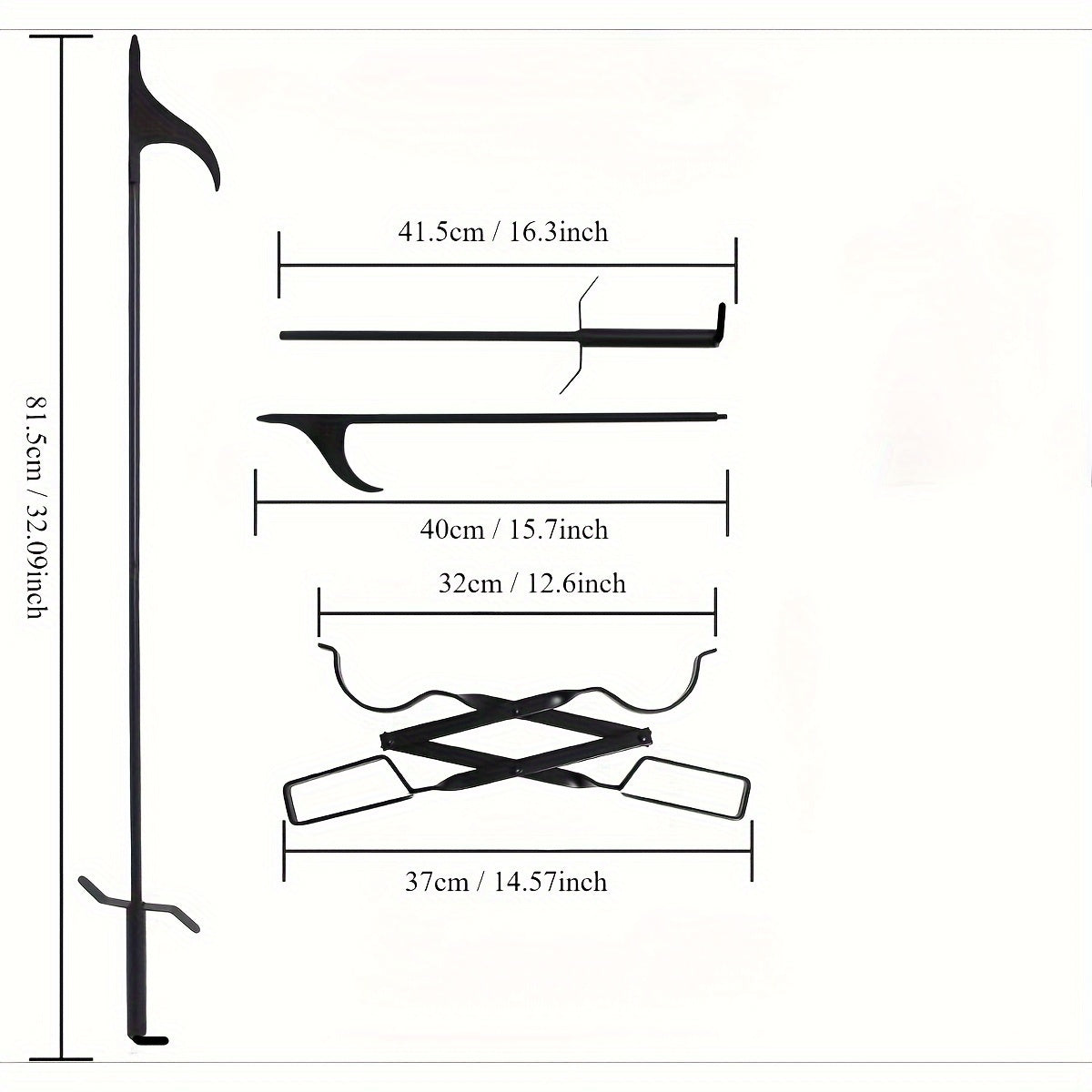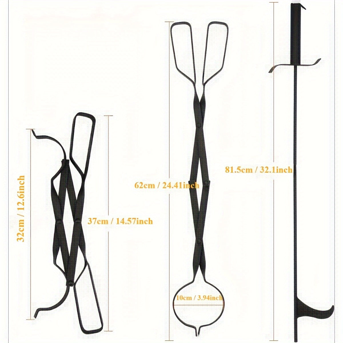Collapsible Fireplace Poker Set 2 Pieces Rustproof Black Indoor Outdoor Use