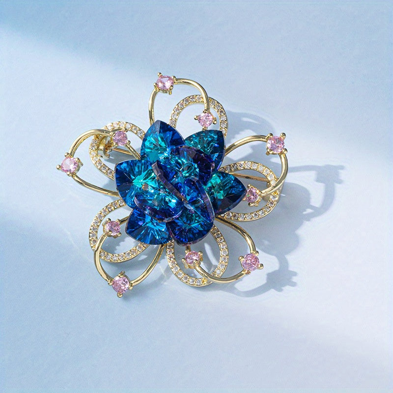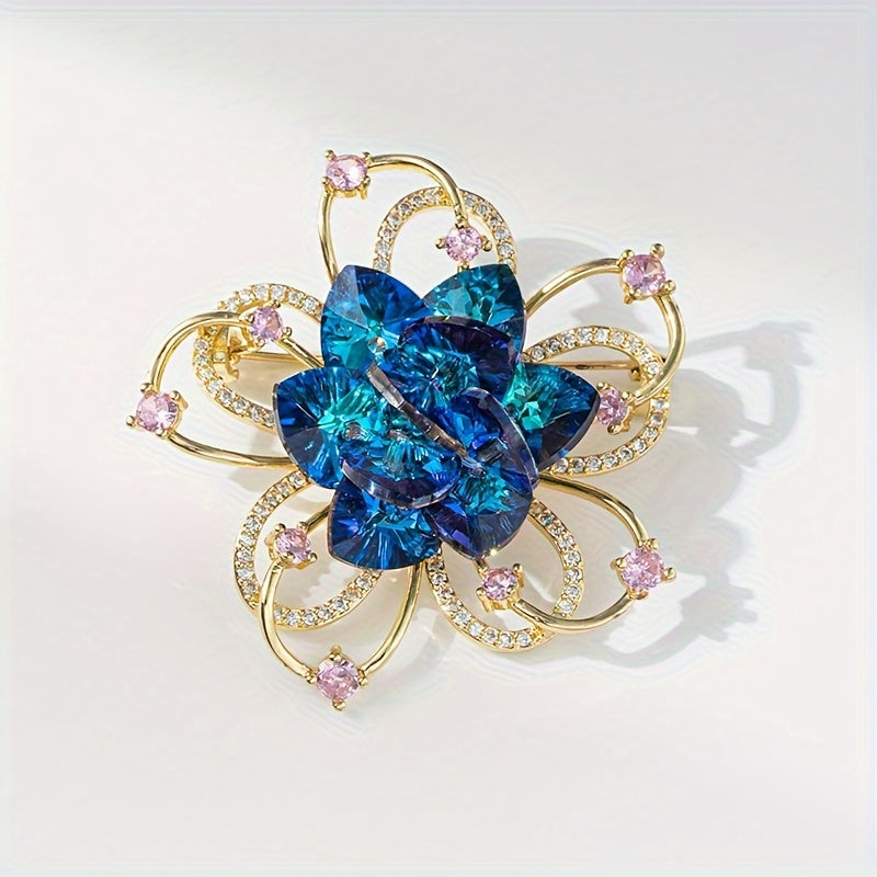 Elegant Flower Brooch with Rhinestones for Ladies Accessories Bags Hats Coats