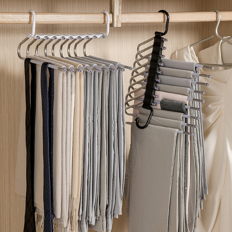 Stainless Steel Multi-Functional Trouser Hanger with Foldable Layers for Wardrobe Storage