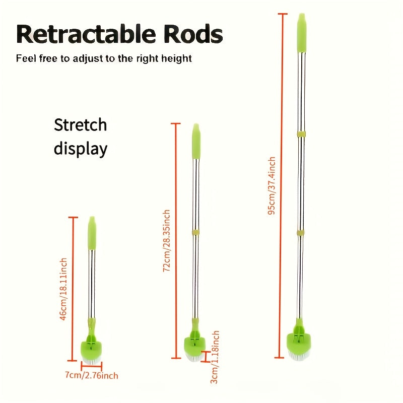 3-Piece Long-Handle Shower Cleaning Brush Set Extendable Sponge Hard Brush Bathroom Kitchen