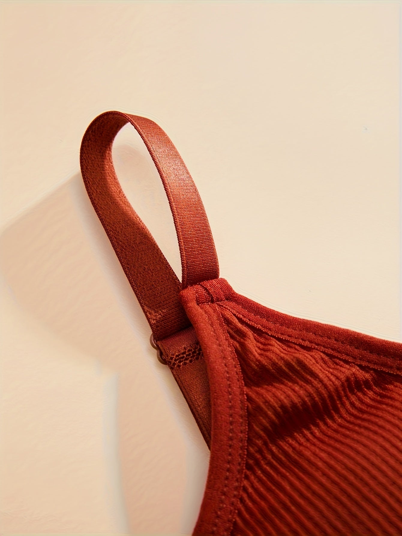 Women's Ribbed Cotton Lingerie Sets with Solid Color Bra and Briefs Three-Piece