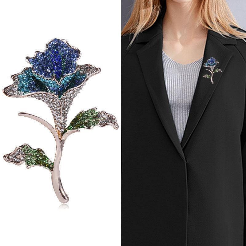 Rhinestone Rose Brooch Pin Floral Jewelry Accessory for Women Gift