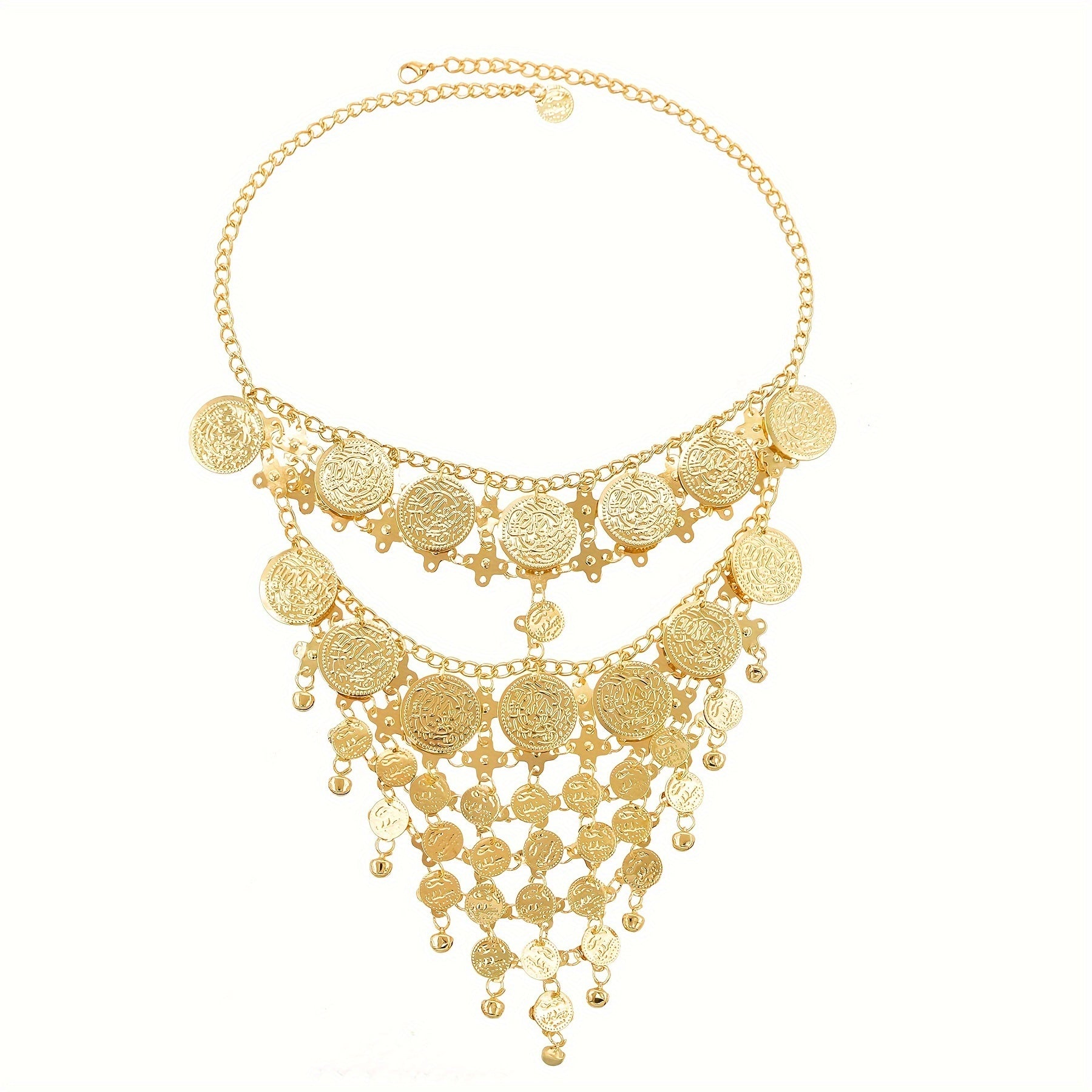 Vintage Arab Afghan Gold Coin Hair Jewelry Headdress with Chain
