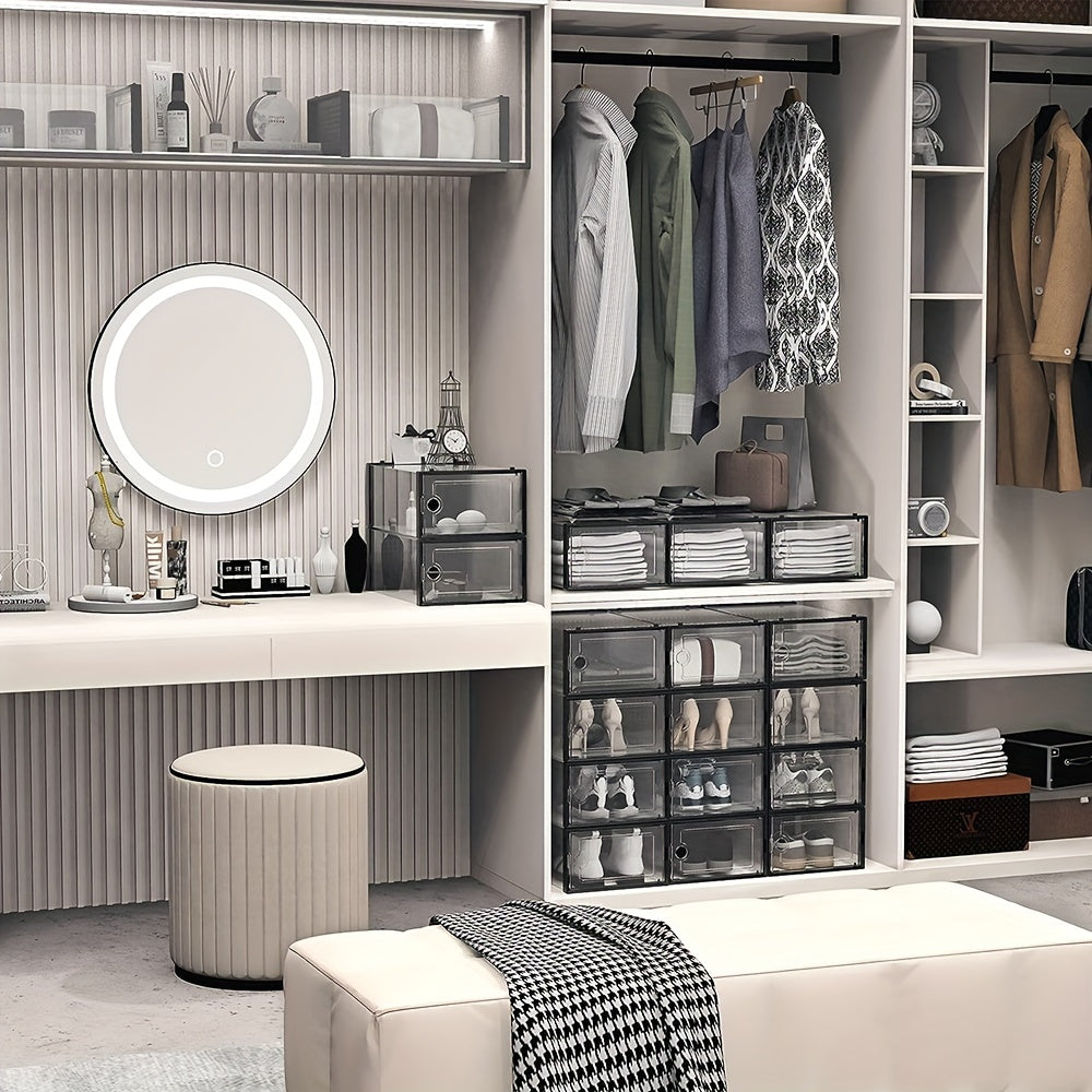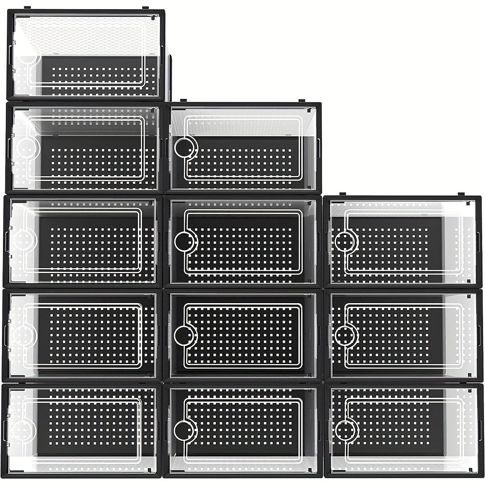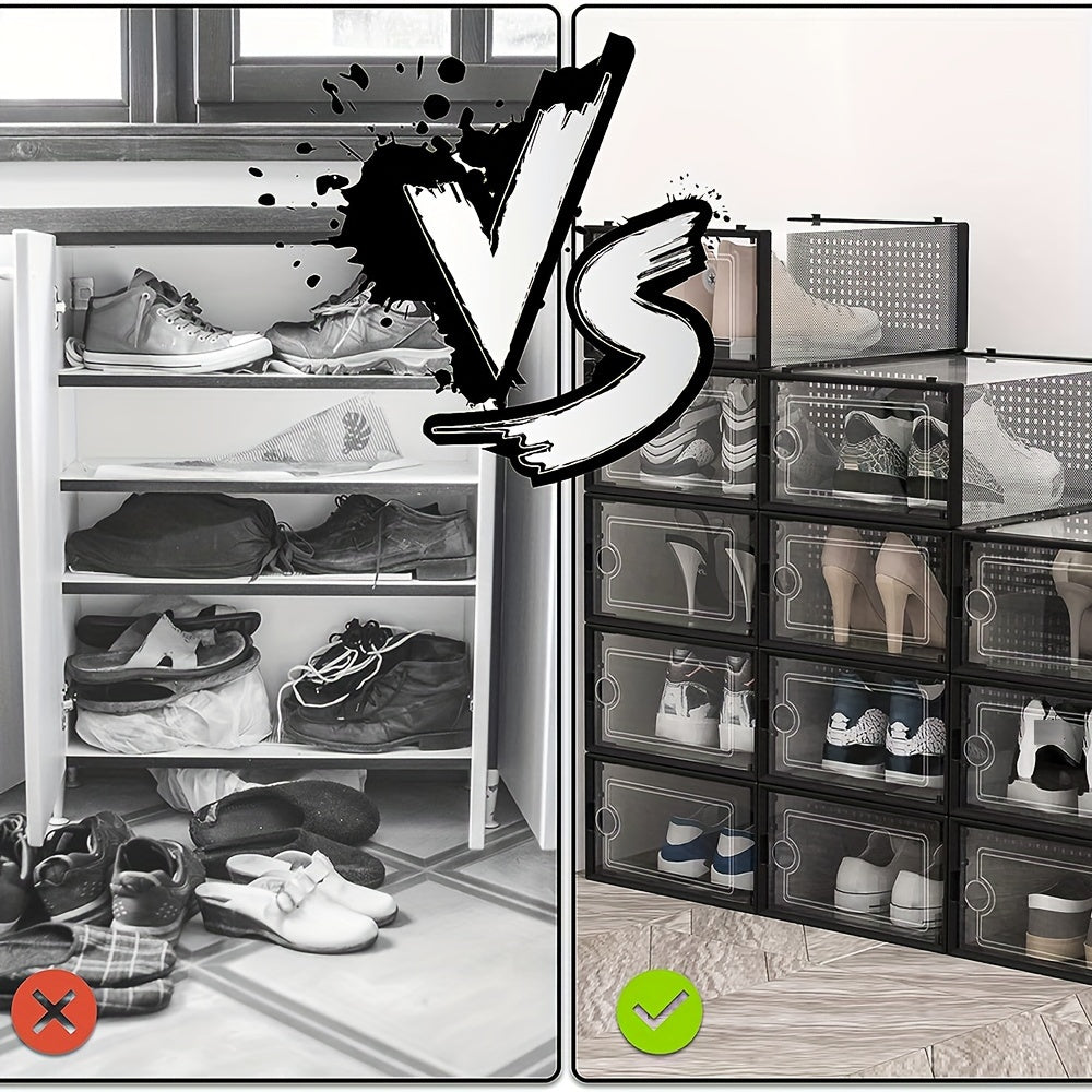 Set of 6 or 12 Clear Plastic Shoe Storage Boxes Dustproof Stackable Foldable