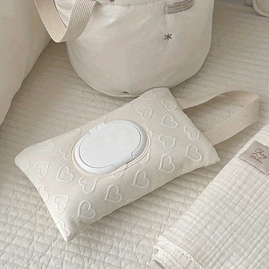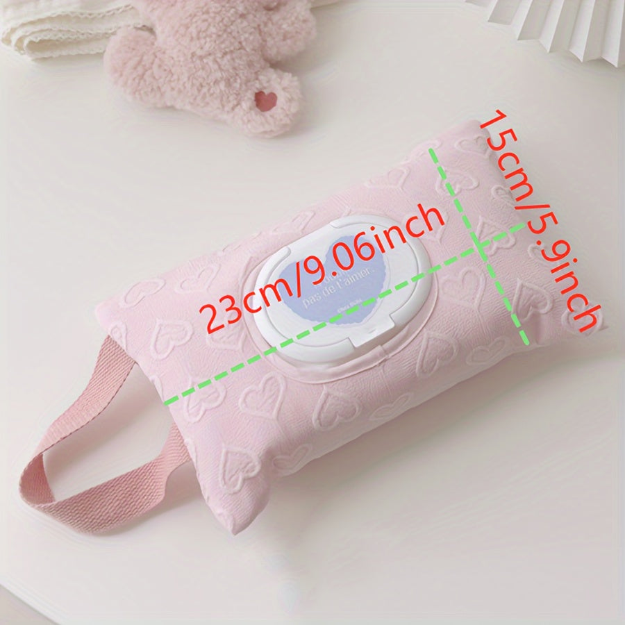 Portable Wet Wipe Organizer Pink White 3D Heart Design Travel Storage Pouch