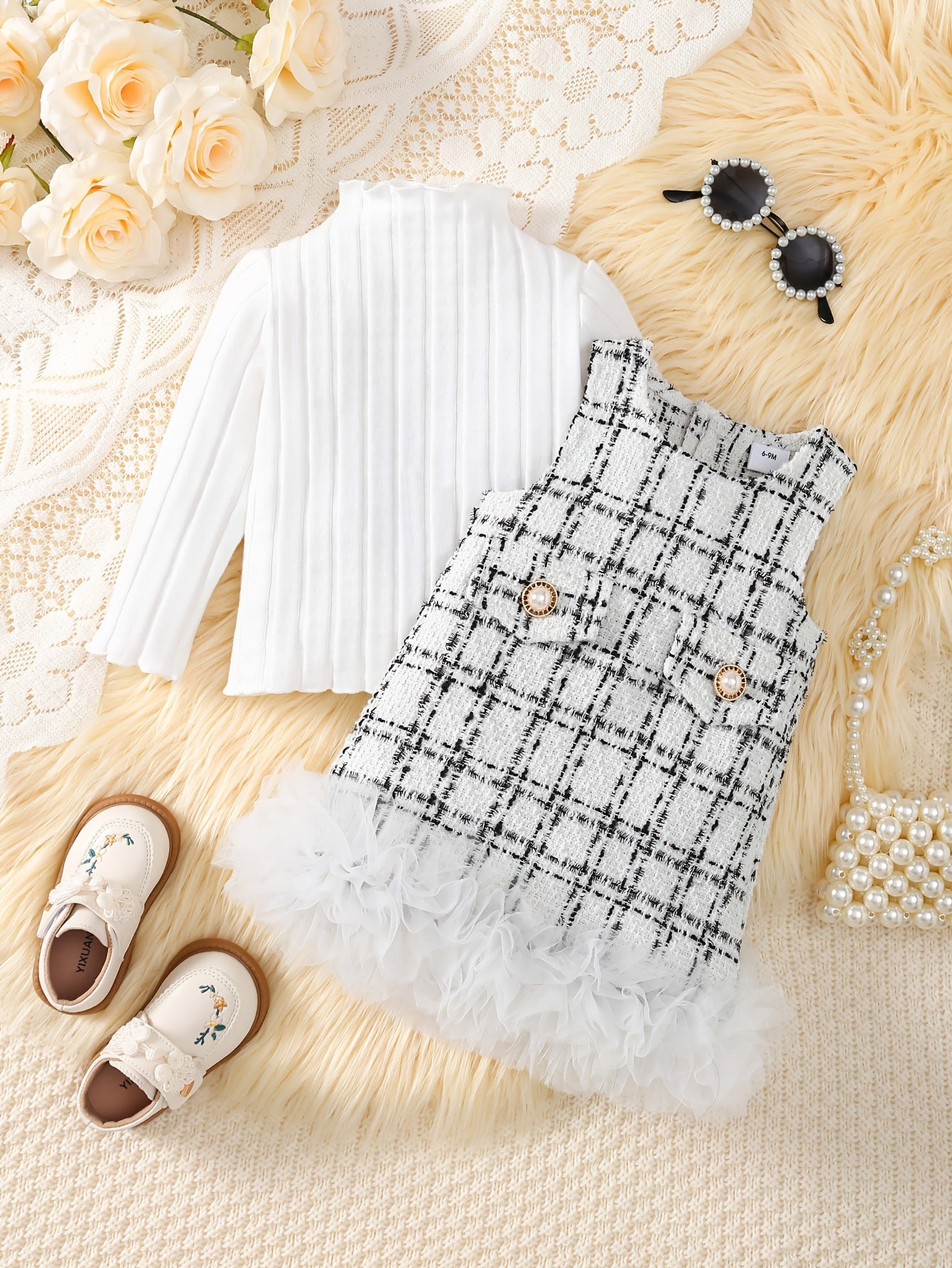 Toddler Girls Red Top and Mesh Skirt Set Long Sleeve Pearl Buttons Spring Fall Outdoor