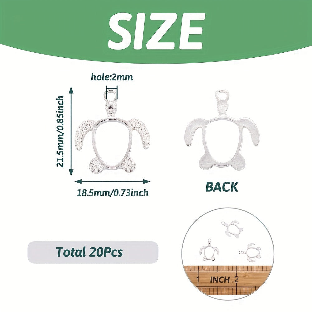 Twenty Pieces of Silvery Turtle Alloy Pendants for Resin Jewelry Making 21.5x18.5mm