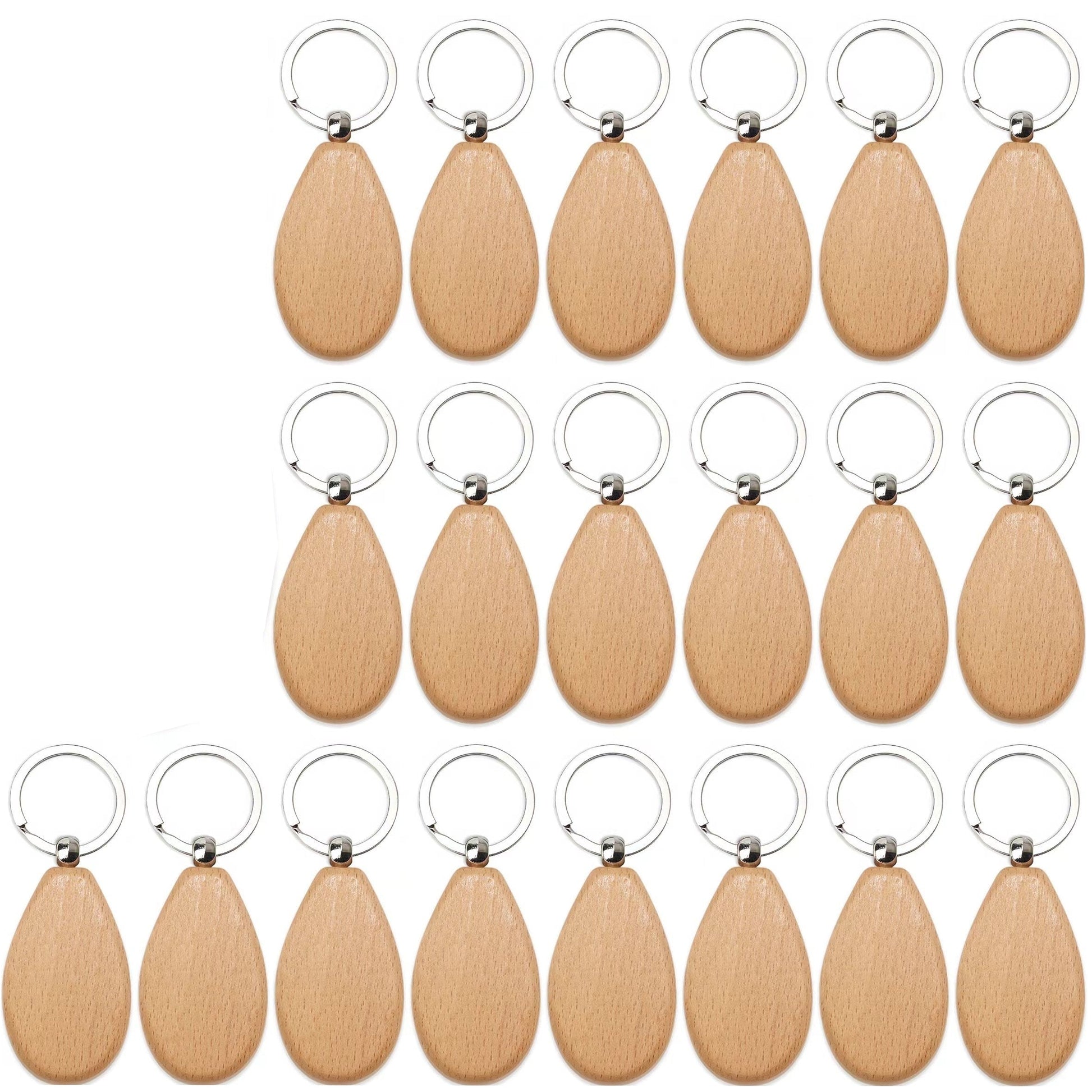 Twenty Pieces Wooden Keychain Blanks Rectangular for Engraving Jewelry Craft Projects