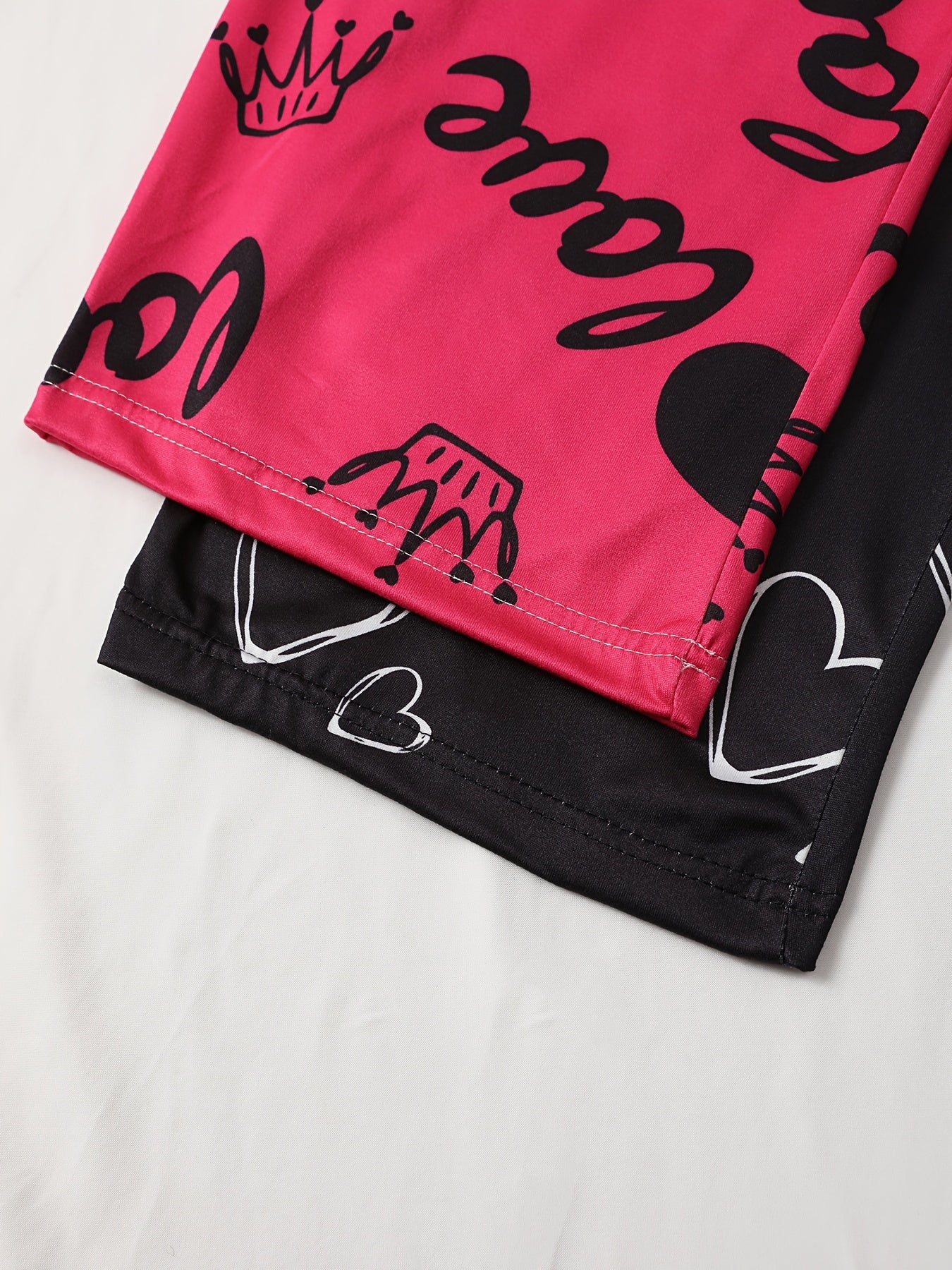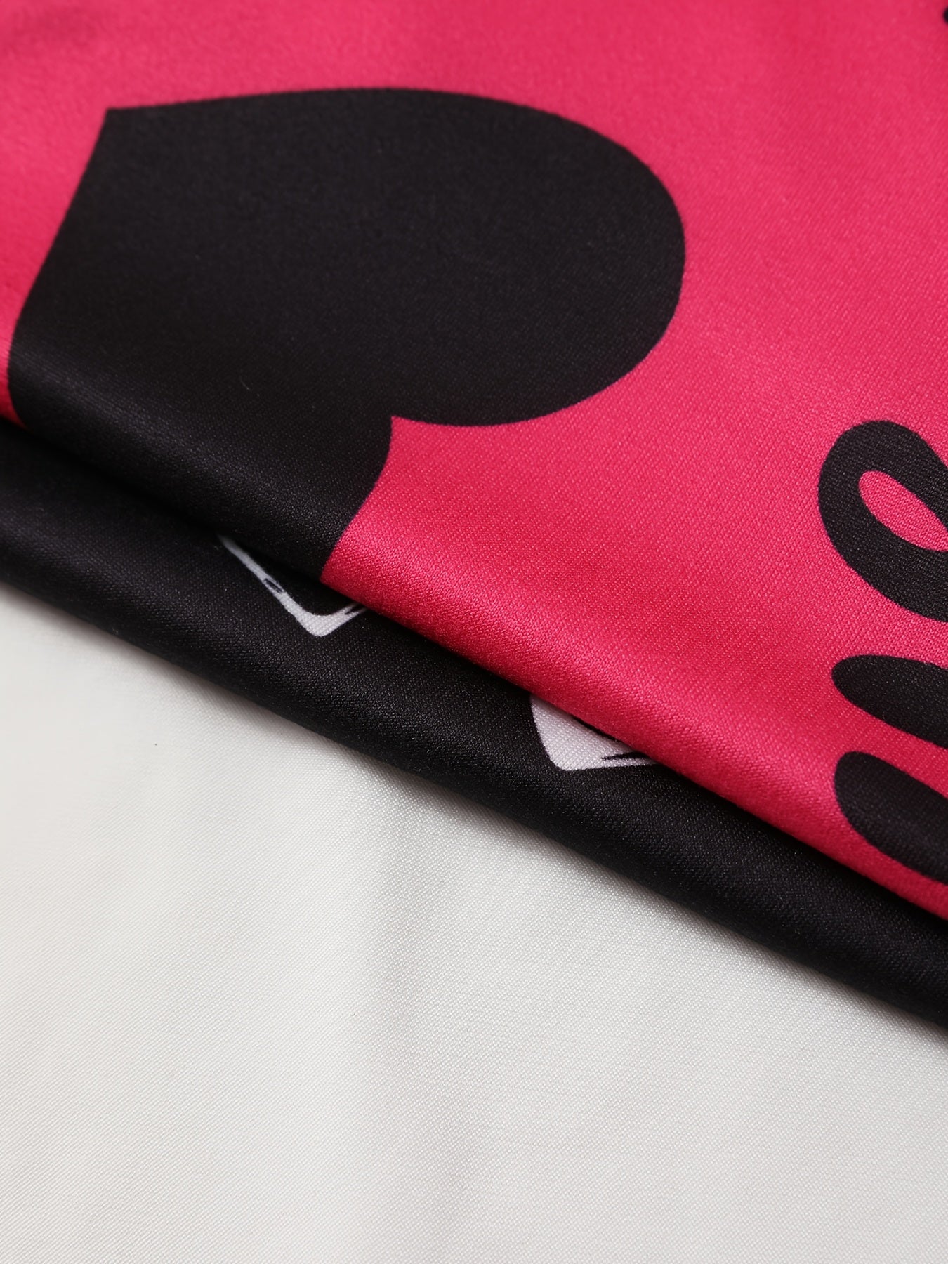 Plus Size Sleep Pants Women All-Season Heart Pattern Knit Fabric with Bow Detail