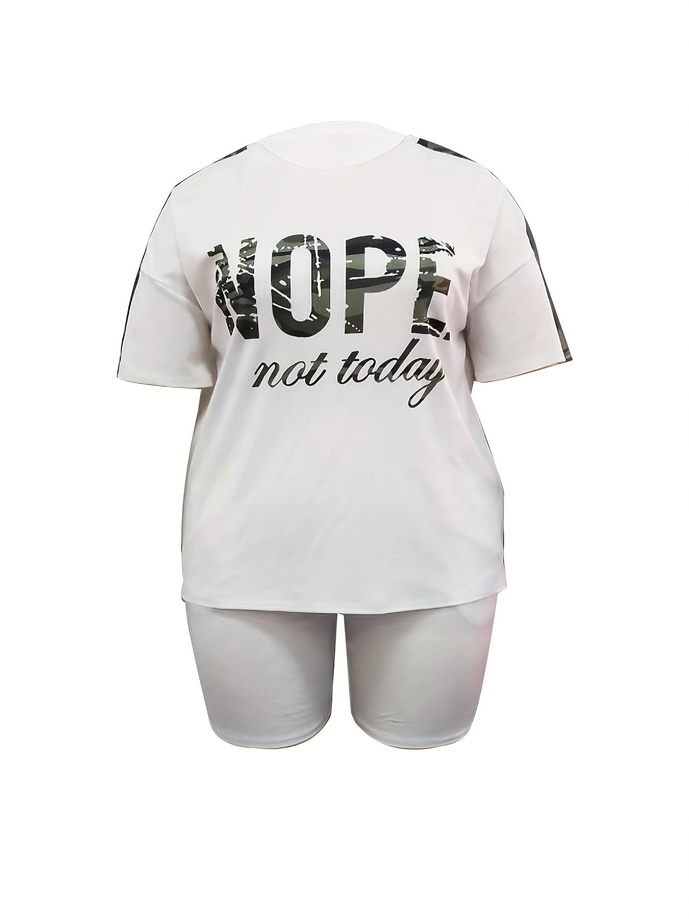 Plus Size Women's Letter Print Short Sleeve Tee and Shorts Set