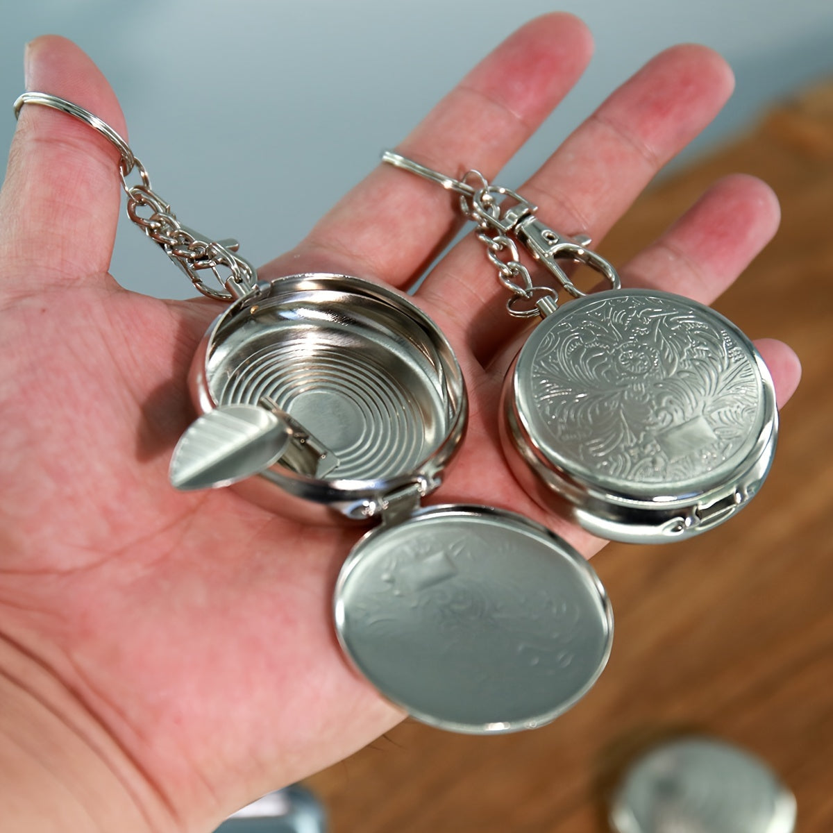 Unisex Stainless Steel Keychain Ashtray Glossy Chrysanthemum Sun Pattern