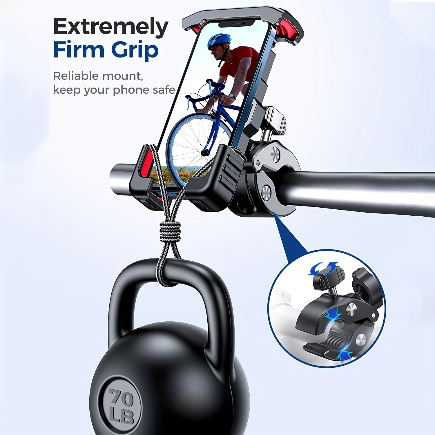 Universal ABS Motorcycle Phone Holder – Adjustable, Secure Grip, Red Accents