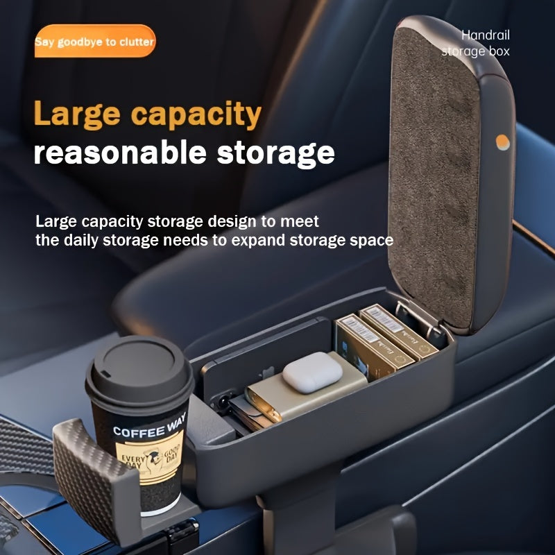Universal Faux Leather Car Armrest Box with Storage and Raised Pad