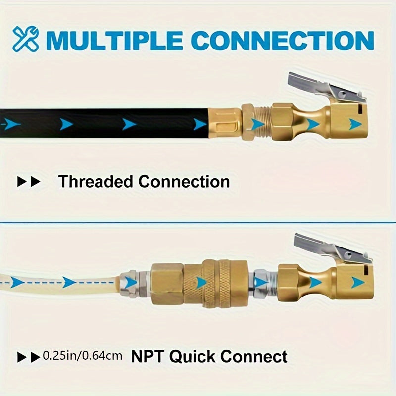 Universal Fit Heavy Duty Copper Tire Inflator Chuck with Clip