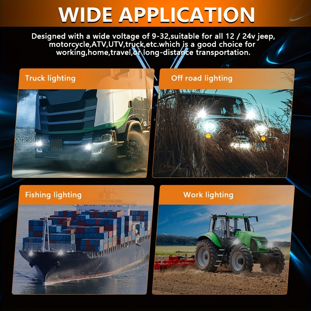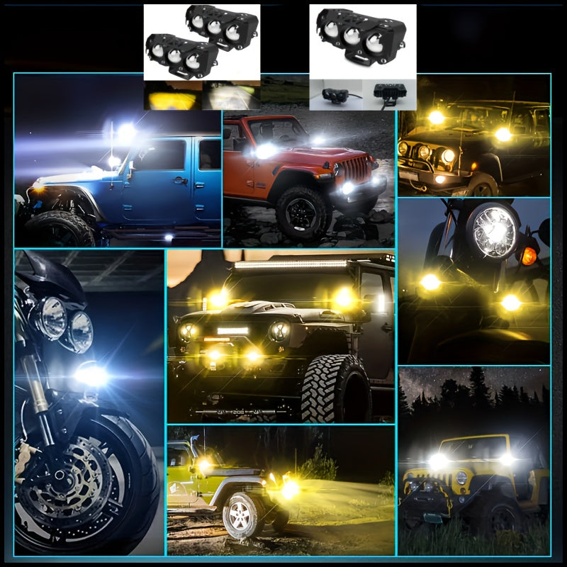 Universal Motorcycle LED Headlights Double Color Fog Lamps 12V 24V Black