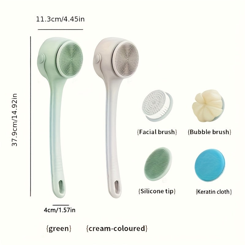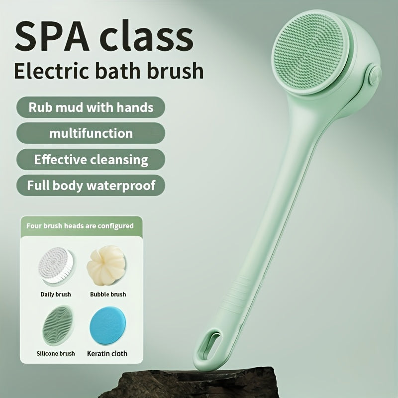 Electric Shower Brush Cleaner with 2 Long Handles 4 Rotating Shower Heads Silicone Body Scrub