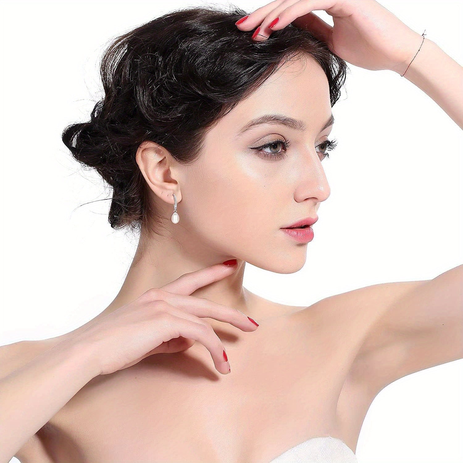 Sterling Silver Pearl Dangle Earrings Set for Women with Cultured Freshwater Pearls