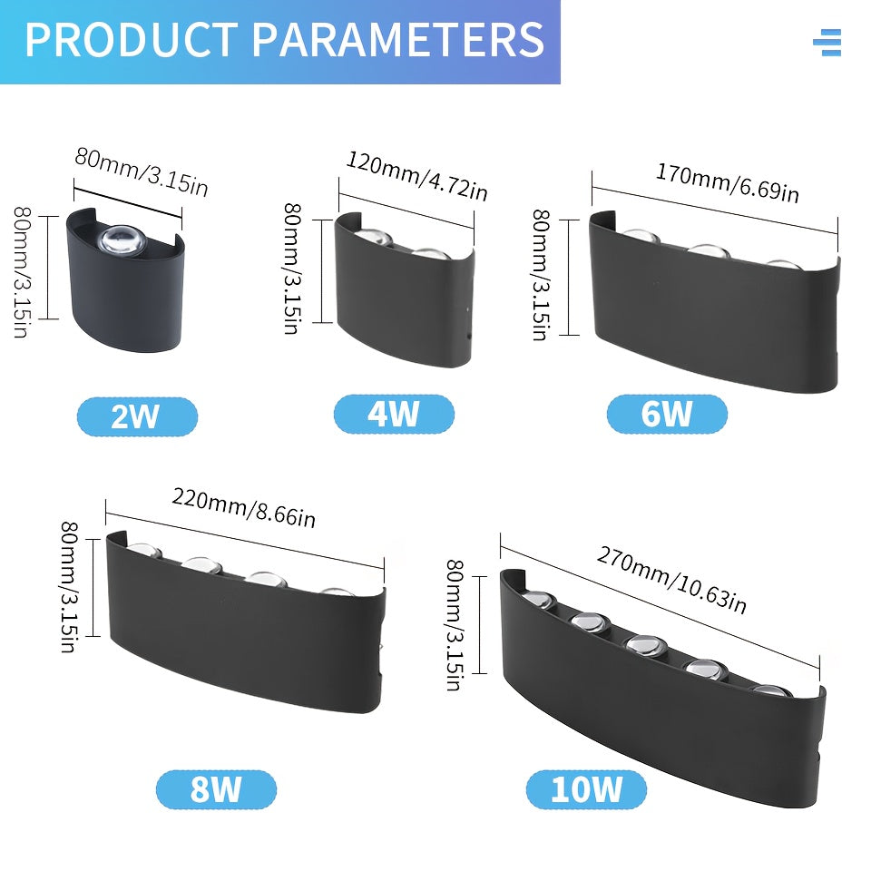 Wall Light with Adjustable Wattage 2W-10W for Indoor and Outdoor Use 85-265V