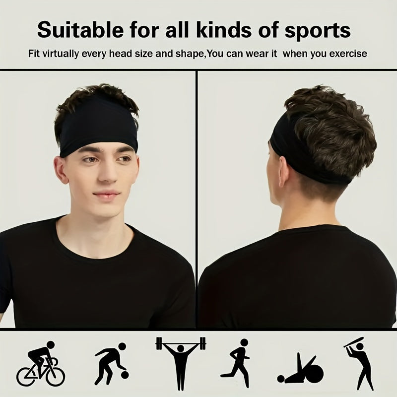 Black Sports Headbands Set of 1 or 5 for Men Women Running Cycling Yoga Fitness