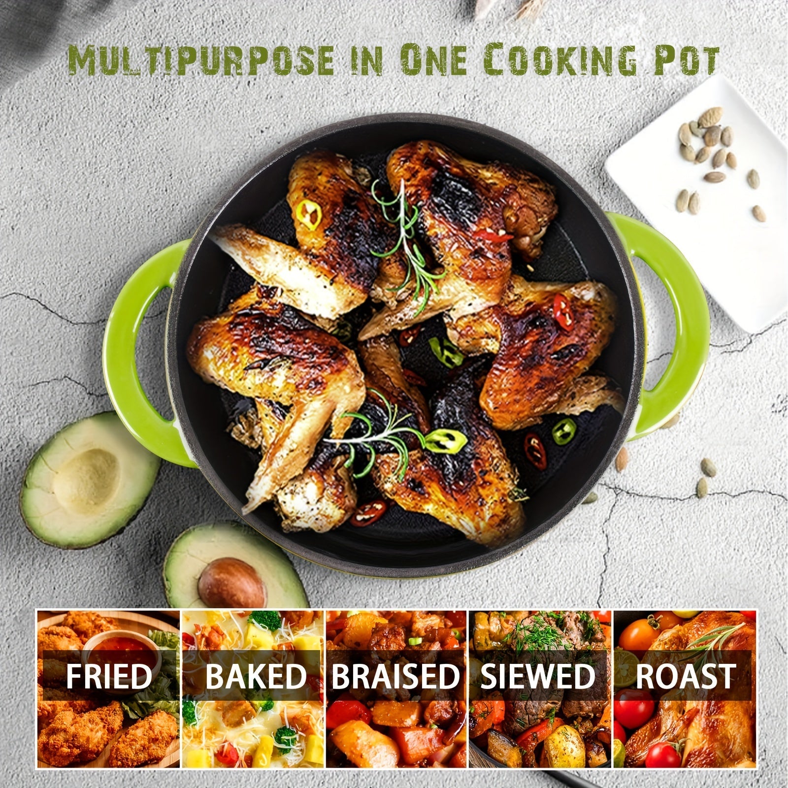 Enameled Cast Iron Dutch Oven 2.6QT with Lid for Home and Restaurant Use