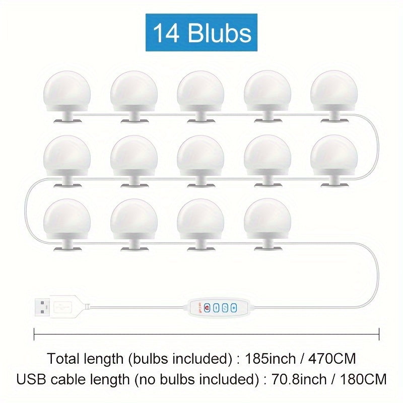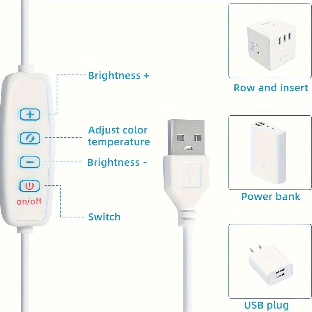 LED Makeup Mirror Lights Kit with 3-Color Dimmable USB-Powered for Vanity Cabinets and Stations