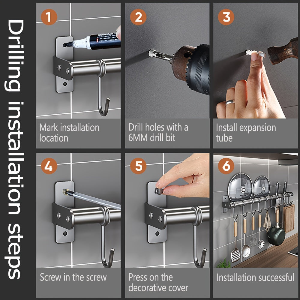 Wall-Mounted Steel Storage Rack with Hooks for Kitchen and Entryway Organizer