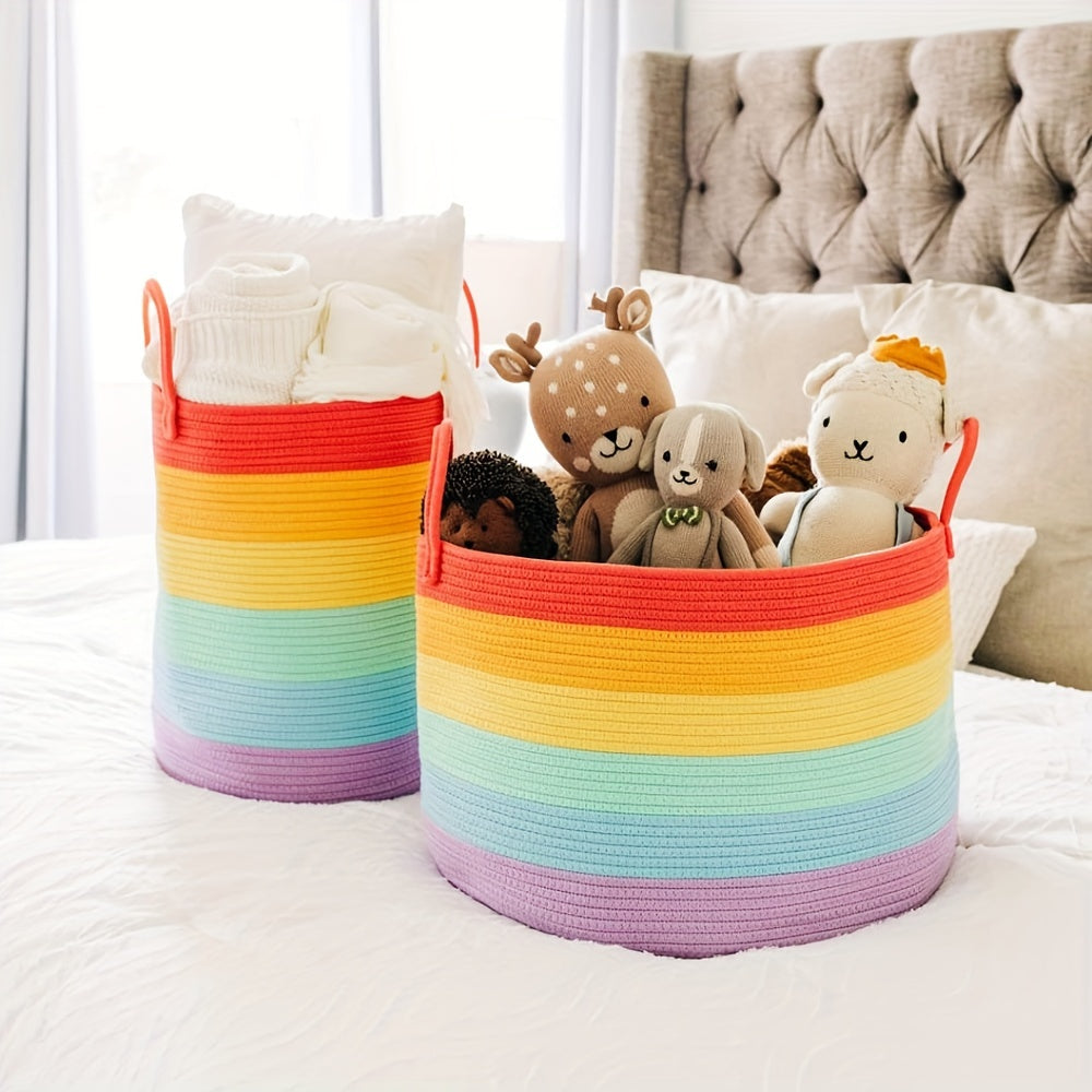 Rainbow Woven Storage Basket with Handles 38x46cm for Laundry Toys Playroom