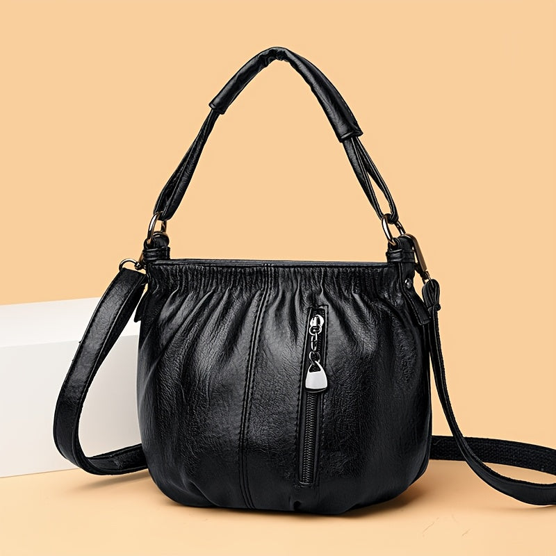 Vintage Crossbody Bag for Women Leather Bucket Style Small Purse with Adjustable Strap in Black Burgundy Brown