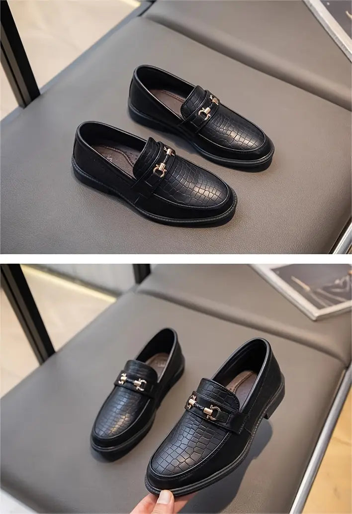 Vintage-Inspired Slip-On Loafers for Boys and Girls Faux Leather Pointed Toe Casual Dress Shoes Black Brown