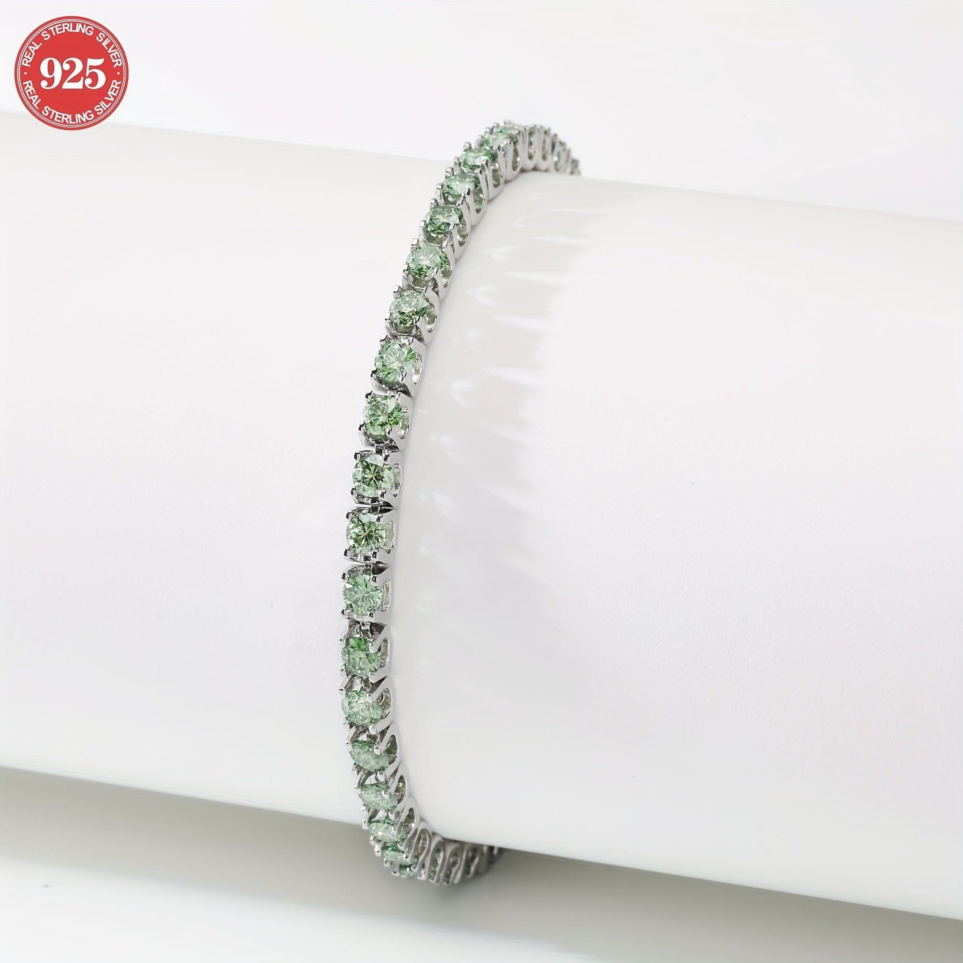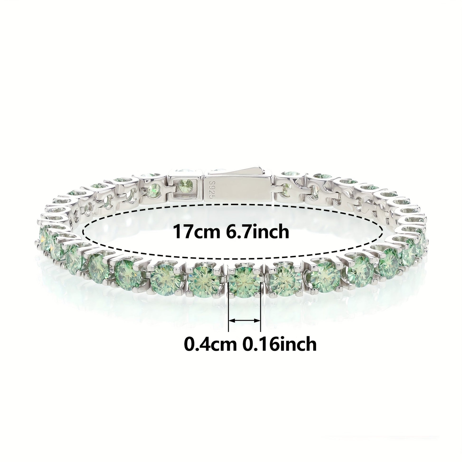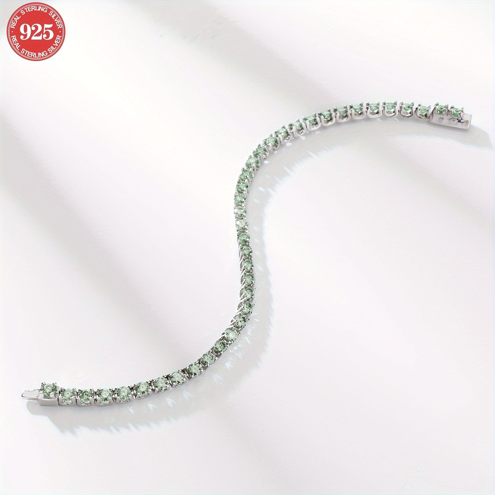 Sterling Silver Tennis Bracelet with Green Moissanite Stones and Gold Plating for Women