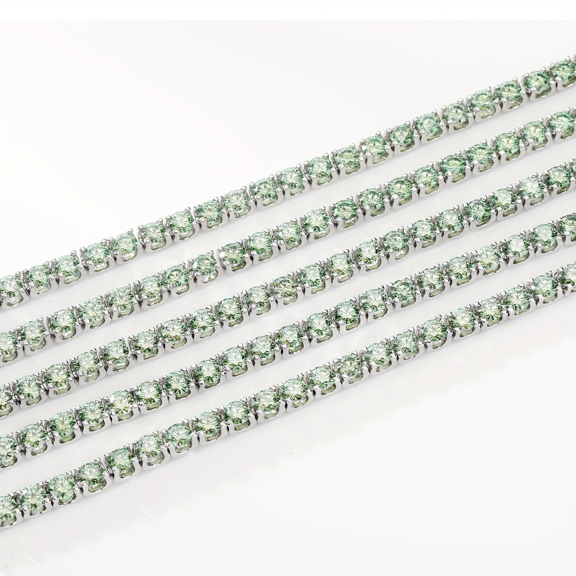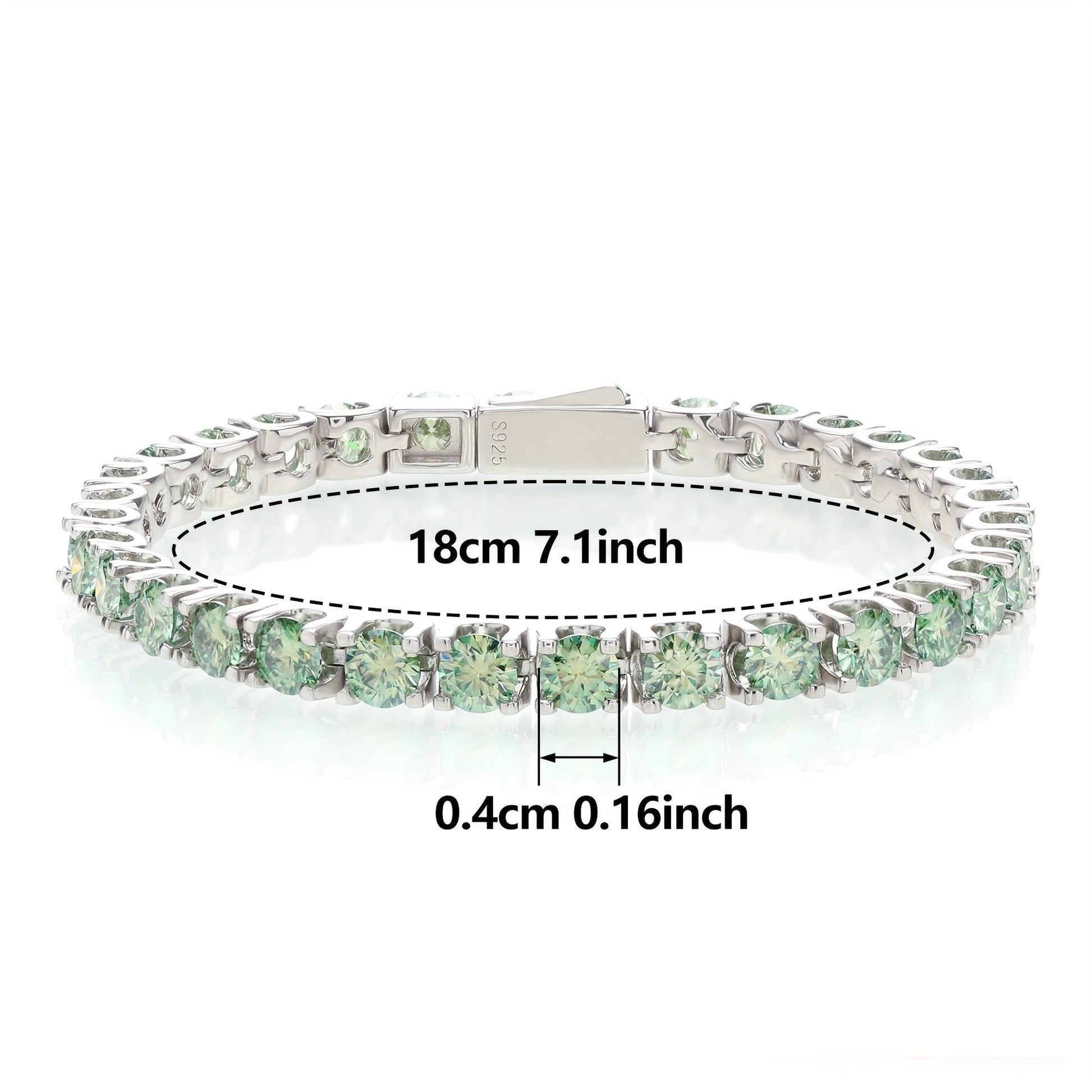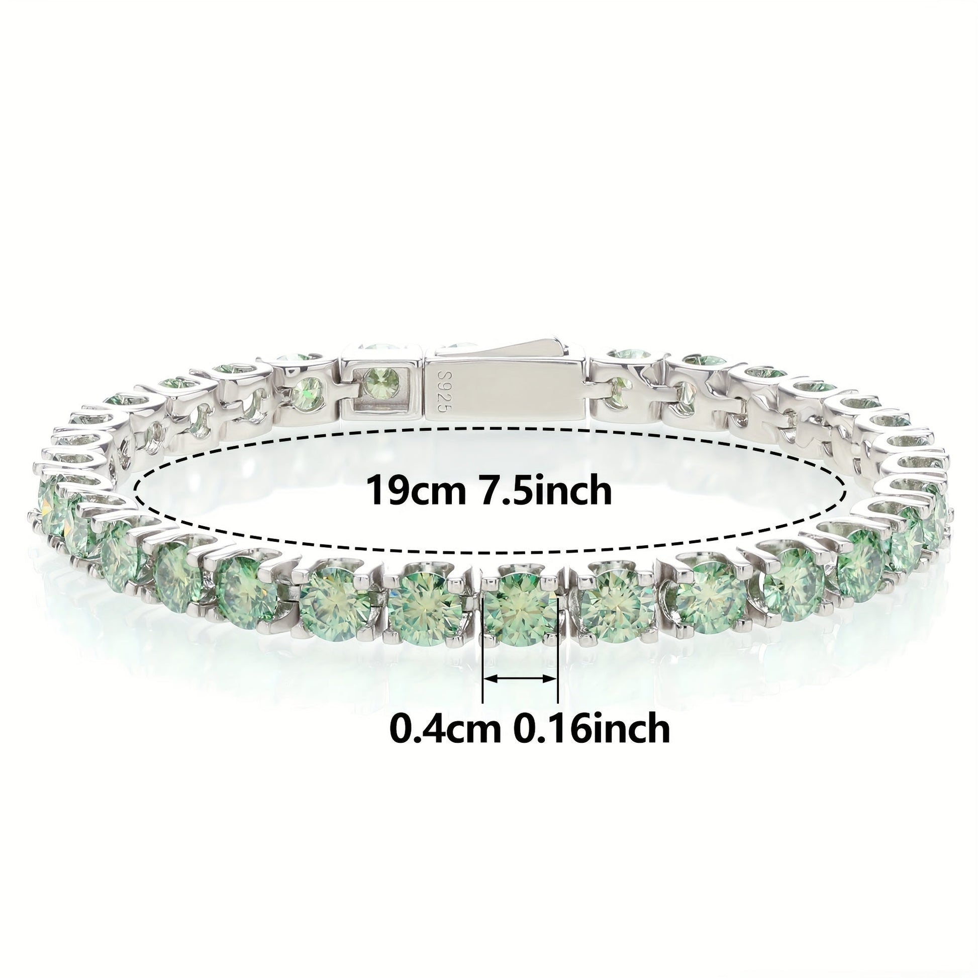 Sterling Silver Tennis Bracelet with Green Moissanite Stones and Gold Plating for Women