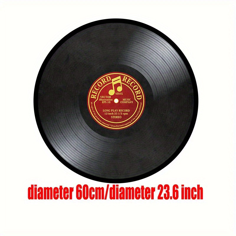 Vinyl Record-Inspired Round Area Rug Plush Sponge Material 1.2cm Thick for Living Room Bedroom