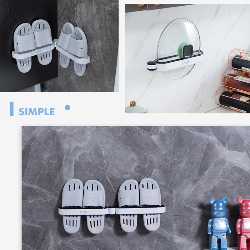 Wall-Mounted Bathroom Slippers Holder Set Waterproof Corner Shelf Organizer