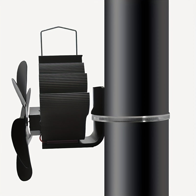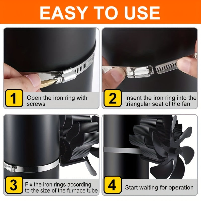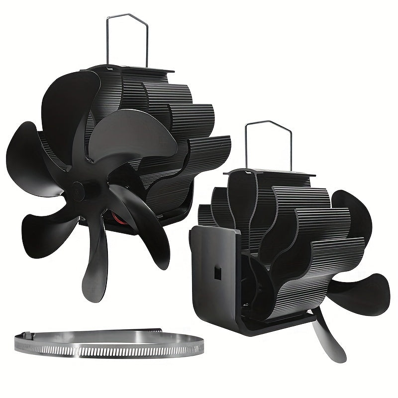 Wall Mounted Heat Powered Stove Fan Black Aluminum Alloy 6-Leaf Air Circulation