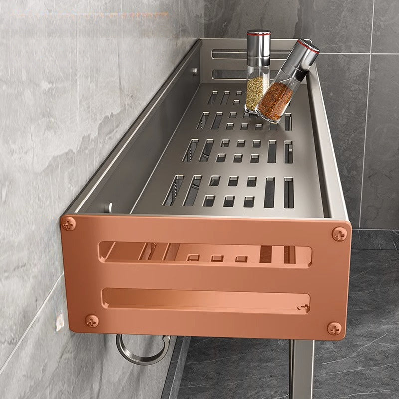 Wall-Mounted Kitchen Storage Rack with Seasoning Shelf and Utensil Holder