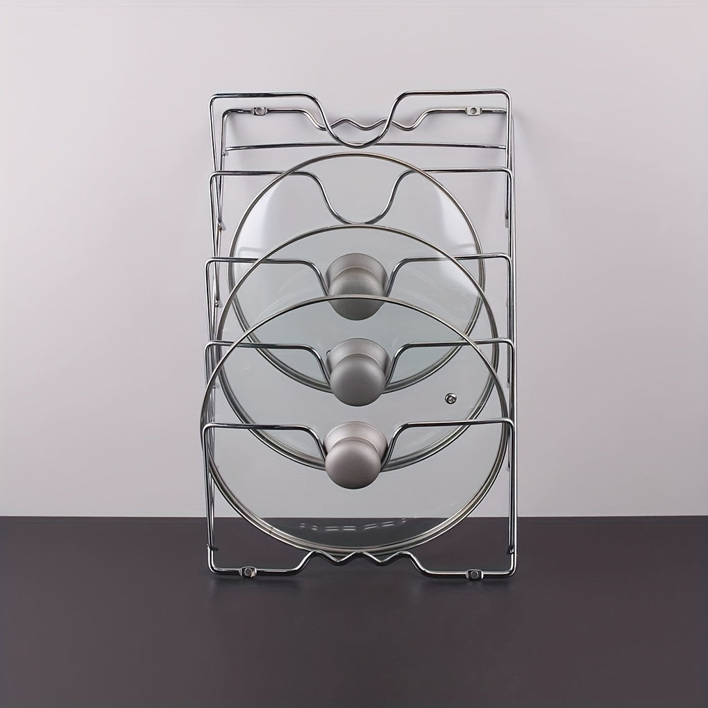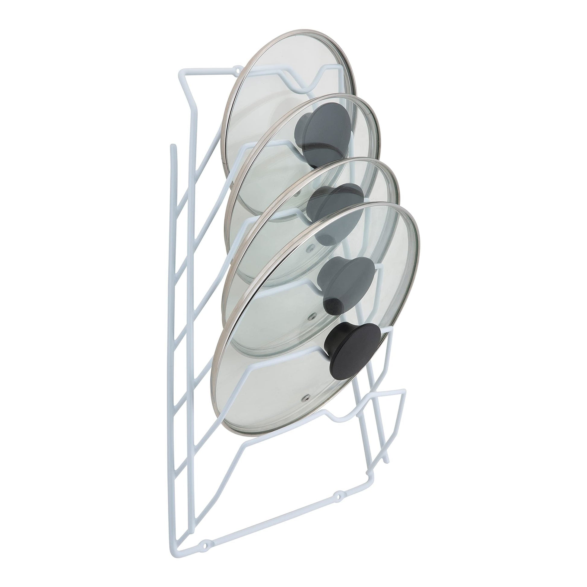 Wall-Mounted Multi-Tier Iron Pot Lid Holder for Kitchen Cabinet Storage