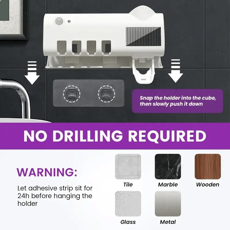 Wall-Mounted Toothbrush Holder with 4 Slots and Smart Toothpaste Dispenser USB Rechargeable No Drilling