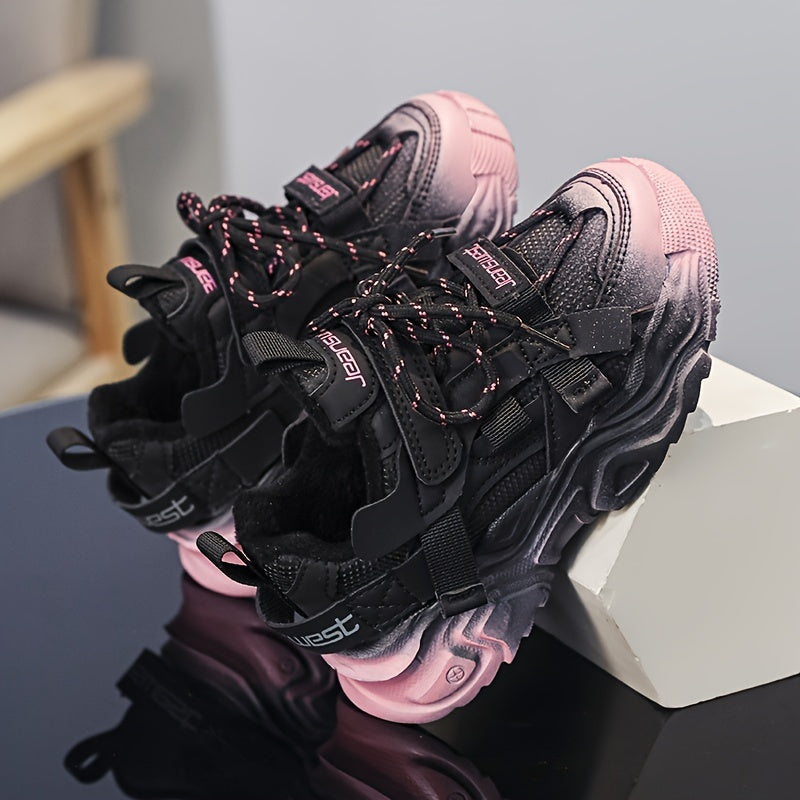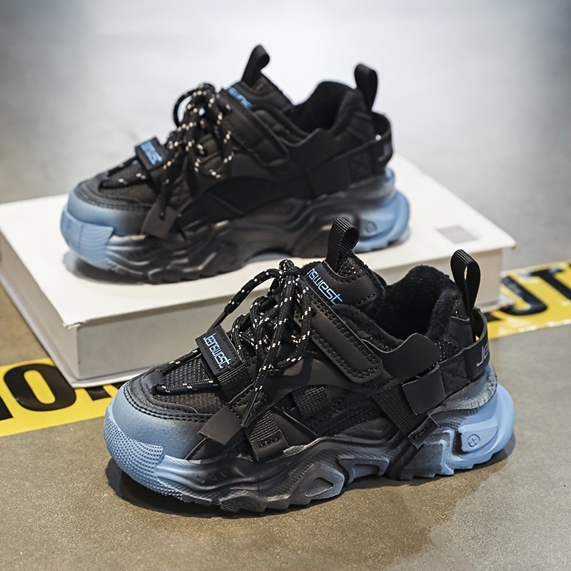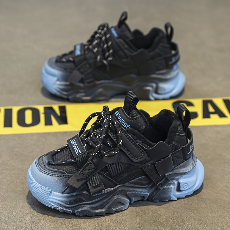 Kids Casual Winter Shoes with Fleece Lining Microfiber Synthetic Leather Mid Top for Boys and Girls