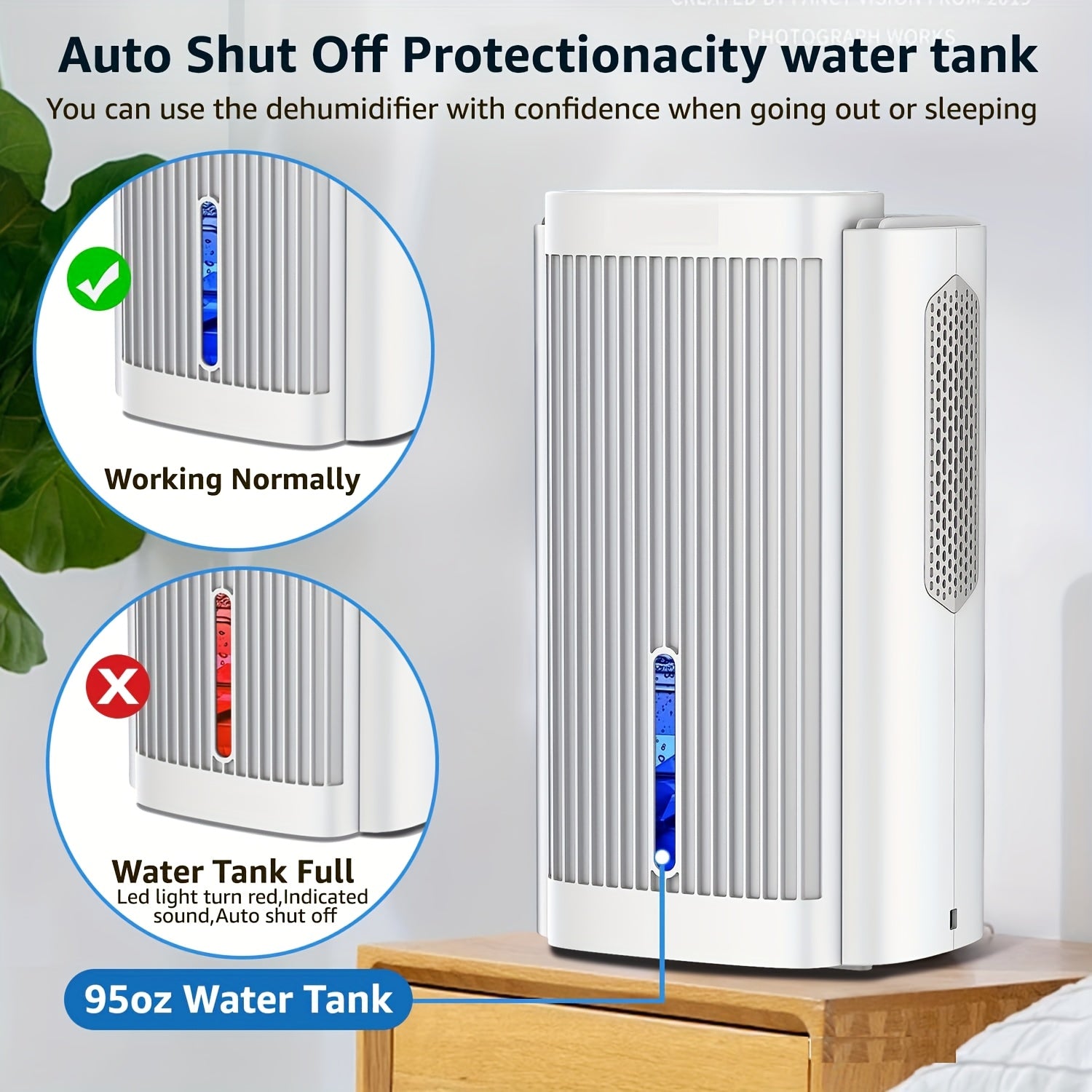 Water Tank Dehumidifier for Home 95oz, 950 sq ft, Sleep Mode, LED Light