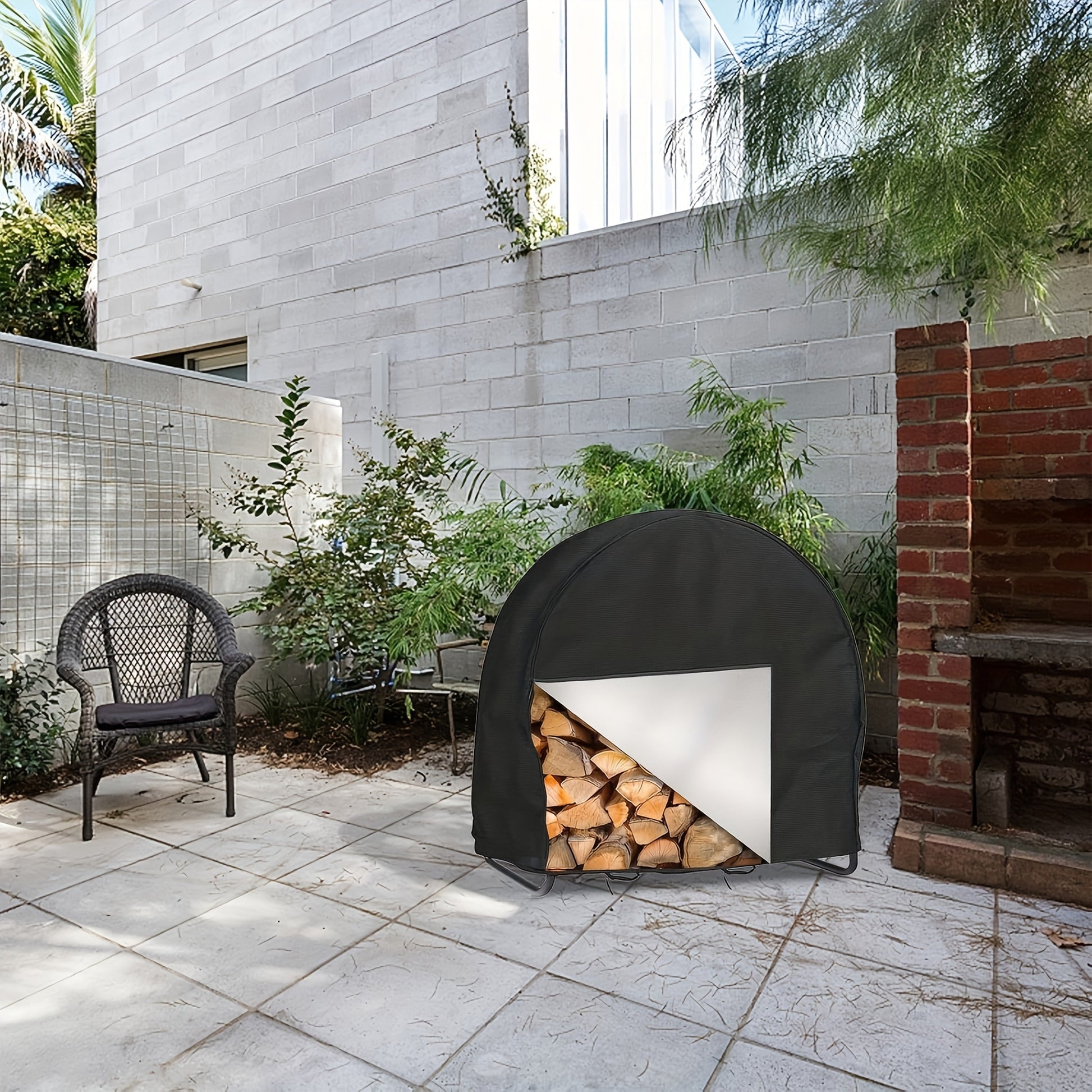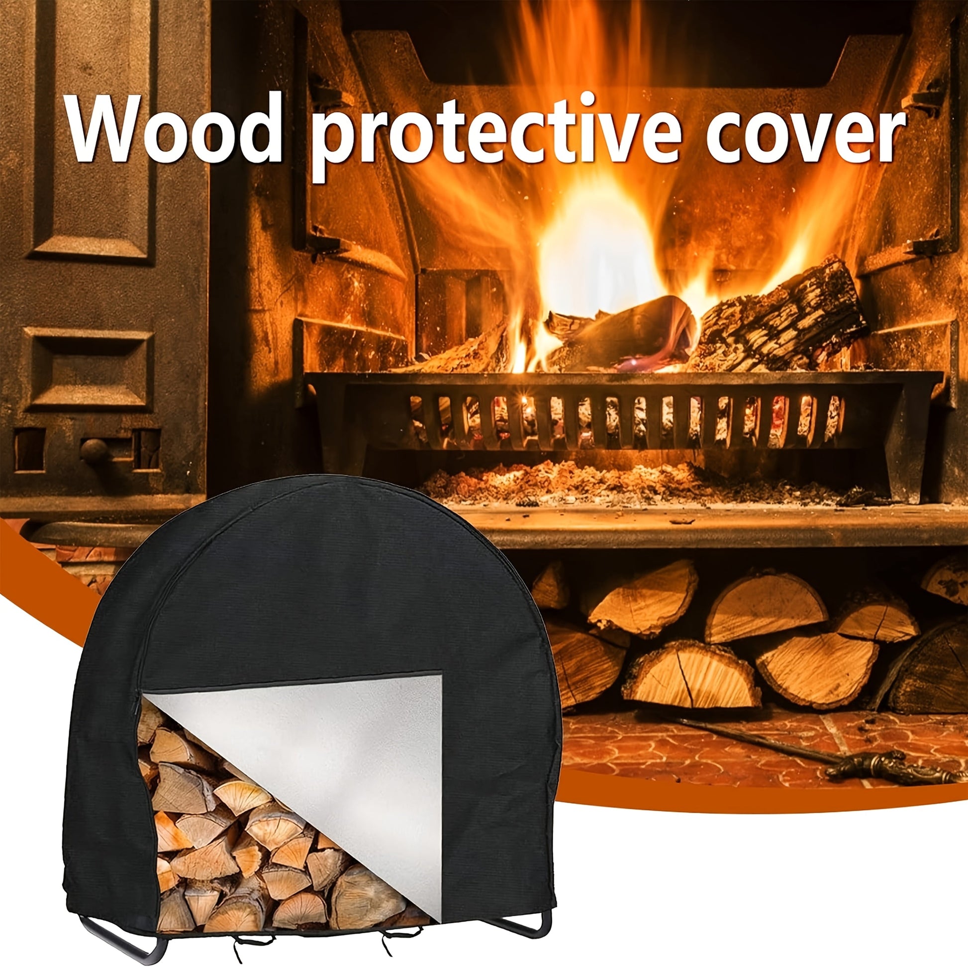 Waterproof Outdoor Log Rack Cover with Zipper and Wind Buckle for Firewood Storage