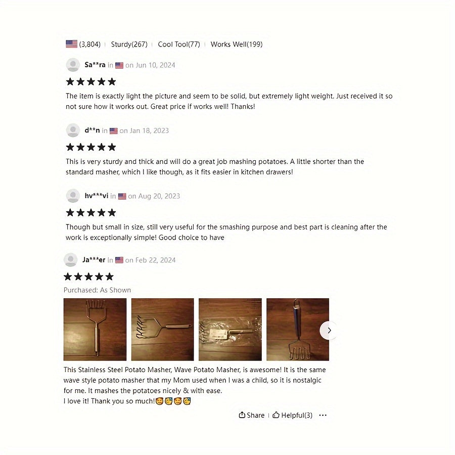 Stainless Steel Potato Masher Kitchen Utensil Durable Hand Tool